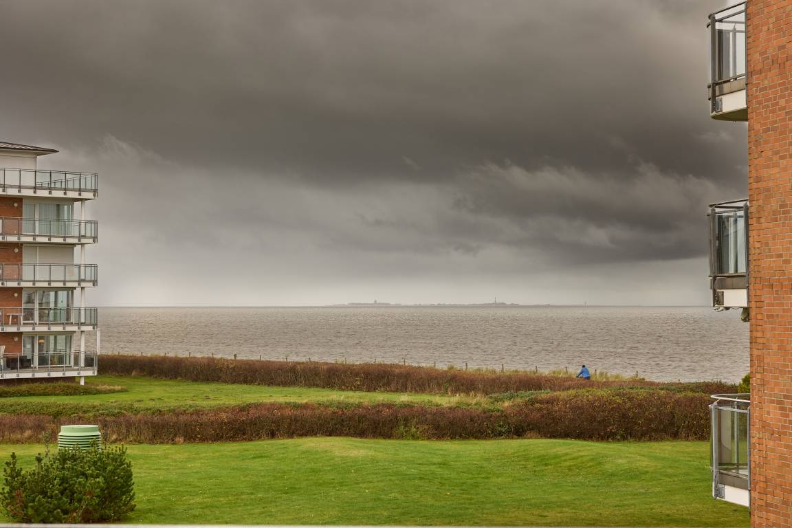 Hochwertig mit Seeblick – Strandpalais Duhnen Haus 2 / Eingang C / FeWo C12, Wehrbergsweg 32c, 3-Raum, 1. Obergeschoss, bis zu 4 Personen, Blick auf Neuwerk und die Nordsee