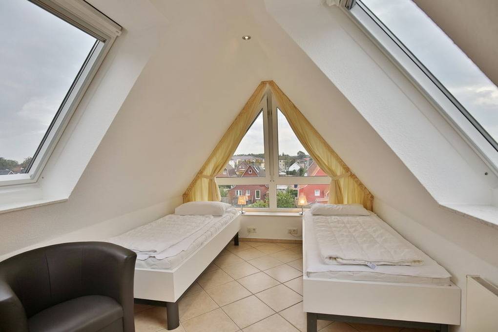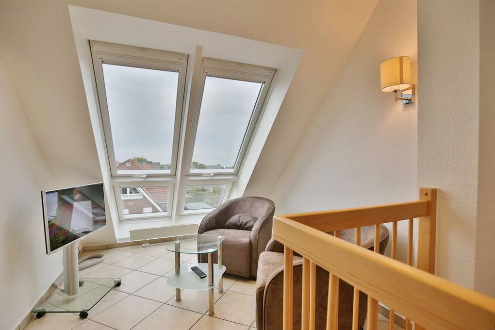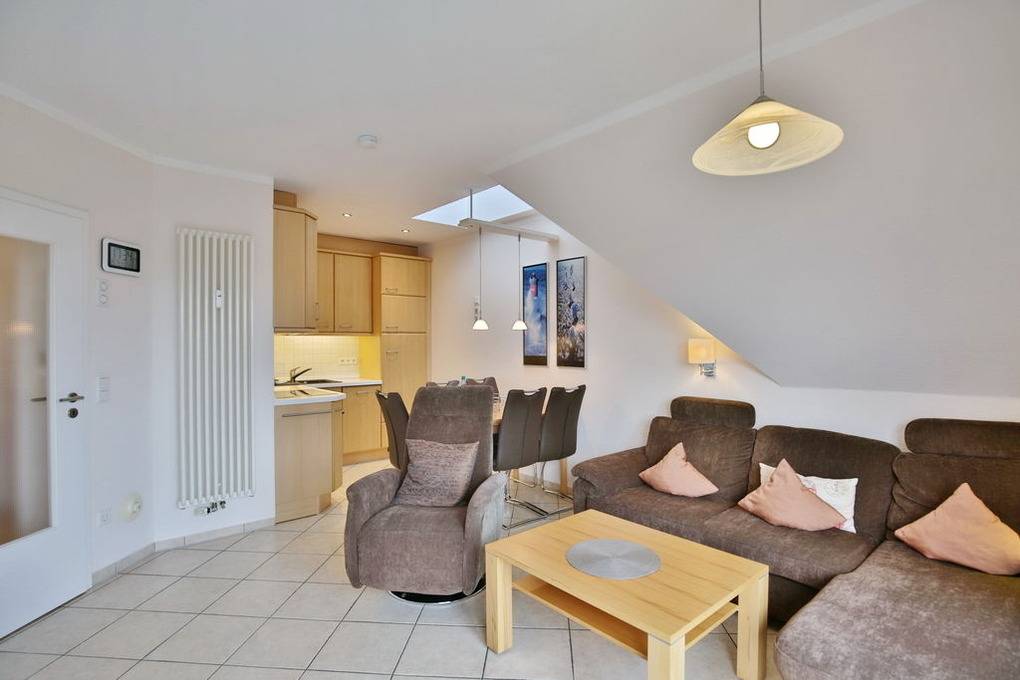 Sehr schöne 3-Raum-Maisonettewohnung mit Seesicht aus dem Dachgeschoss, 2.Etage mit großem Süd-Balkon, Rollladen, komplett gefliest, 1 Schlafzimmer mit Doppelbett, 1 Schlafzimmer mit 2 Einzelbetten, 1 Wohn-/Schlafzimmer mit Querschläfercouch, Einbauküche (Ceran, Backofen/Mikrowelle, Geschirrspüler, Tiefkühlfach), 3xKabel-TV, kostenloses W-Lan via MeinHotspot, Radio, 2x DU/WC, Wama i.d. Whg., PKW-Stellplatz. Keine Haustiere!