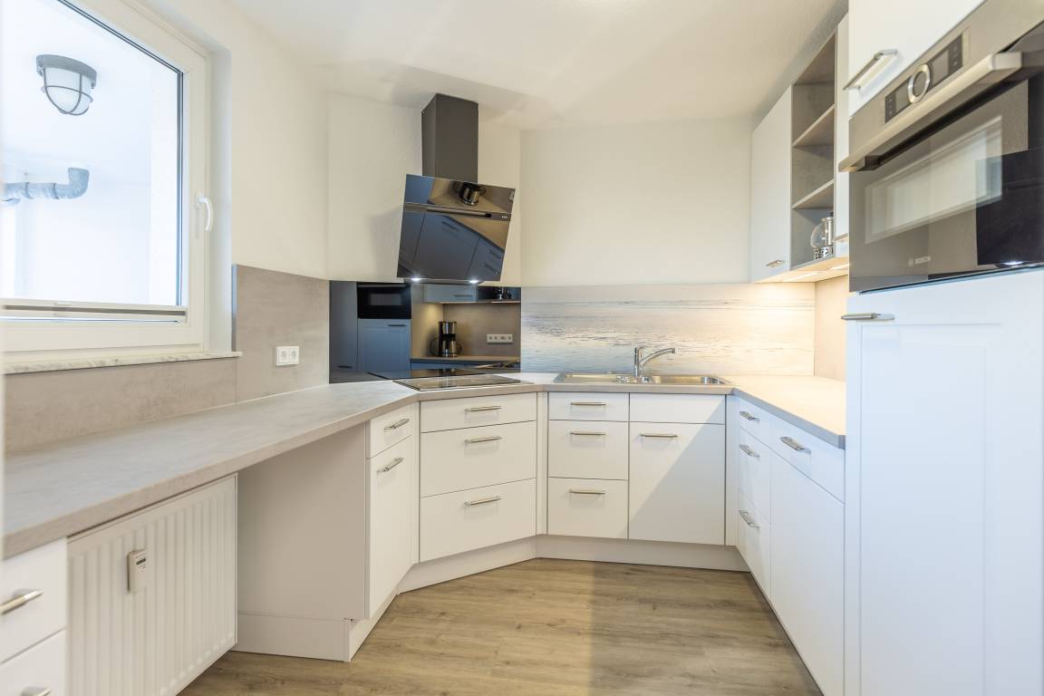 Die separate Küche bietet Ihnen alle Annehmlichkeiten, die Sie in Ihrem Urlaub erwarten. Die Küche ist ausgestattet mit einem Geschirrspüler, einem Backofen mit integrierter Mikrowelle, einem Induktionskochfeld und einem Kühlschrank mit Gefrierfach. Die Wohnung verfügt über ein großes separates Schlafzimmer. Das komfortable XXL-Doppelbett (2x100x200) mit hochwertigen Matratzen sorgt für einen erholsamen Schlaf.