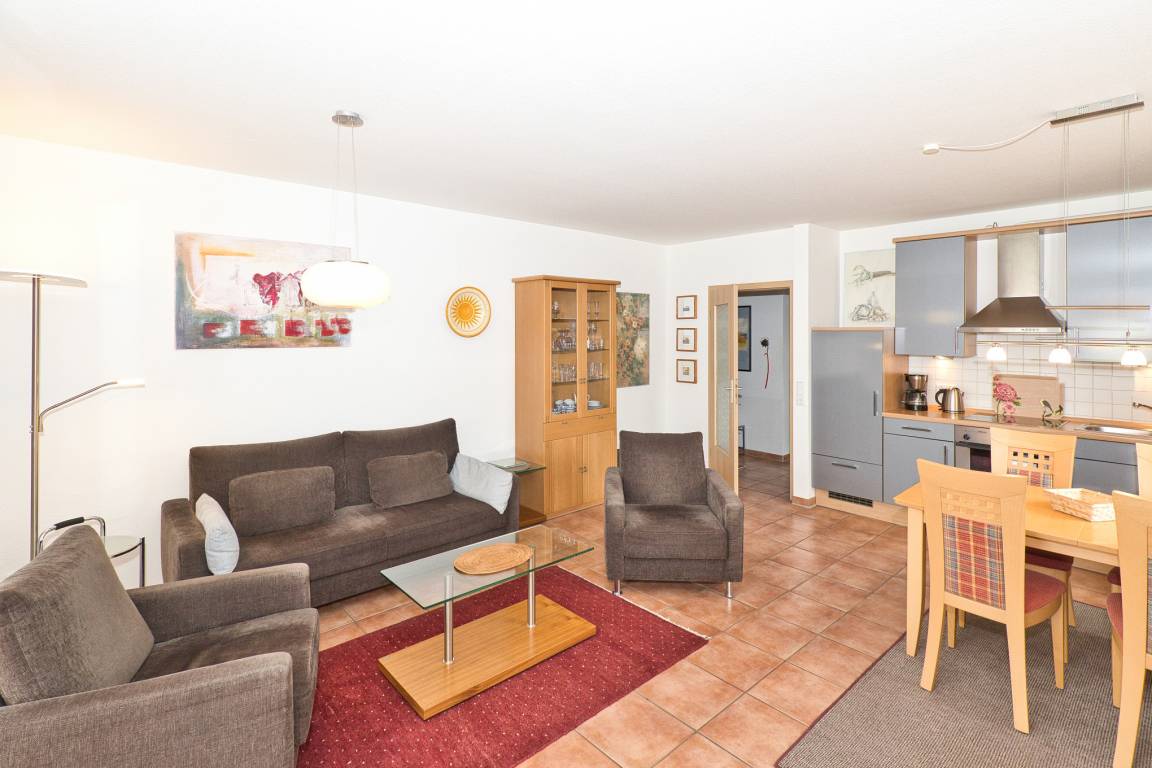 Das Apartment ist geschmackvoll eingerichtet und bietet alles, was Sie für einen erholsamen Aufenthalt benötigen. Das geräumige Schlafzimmer verfügt über einen großen Kleiderschrank und lädt zu erholsamen Nächten ein. Das Duschbad mit Fußbodenheizung und Fenster bietet Ihnen den nötigen Komfort und eine angenehme Atmosphäre.