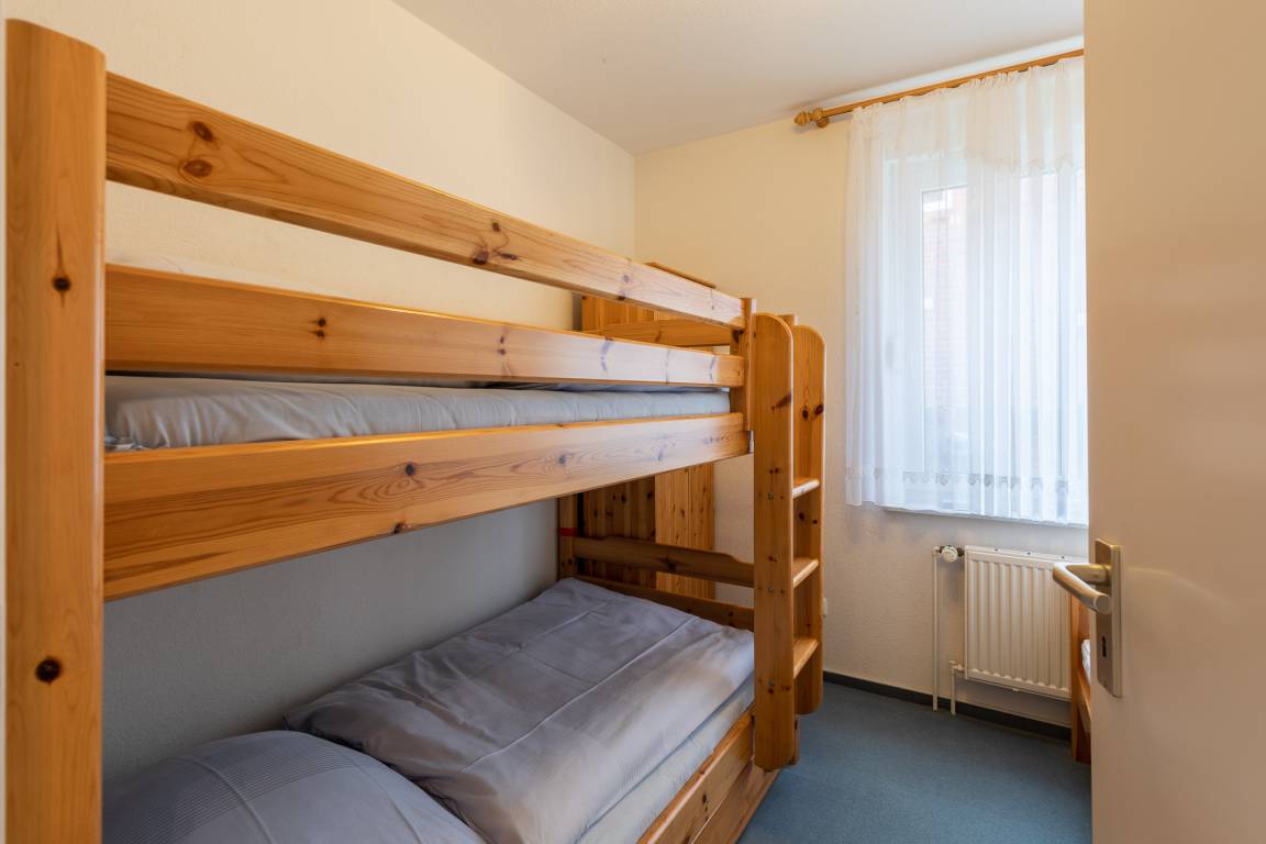 1 Schlafzimmer mit einem Doppelbett (mit Kleiderschrank), 1 Schlafzimmer mit 1 Etagenbett und[nbsp] 1 Einzelbett, Wohnzimmer mit Zugang zur Terrasse (Südterrasse, mit Gartenmöbel), 1 Flatscreen TV (Wohnzimmer), Esstisch, Sofa, Sessel, Einbauküche (Backofen, Cerankochfeld, Kühlschrank mit Gefrierfach, Mikrowelle, Kaffeemaschine, Wasserkocher, Toaster), 1xDusche mit WC, Waschbecken, Spiegel, Waschmaschine im Bad, Nichtraucherwohnung.