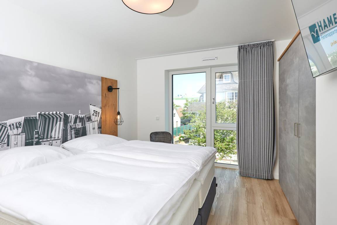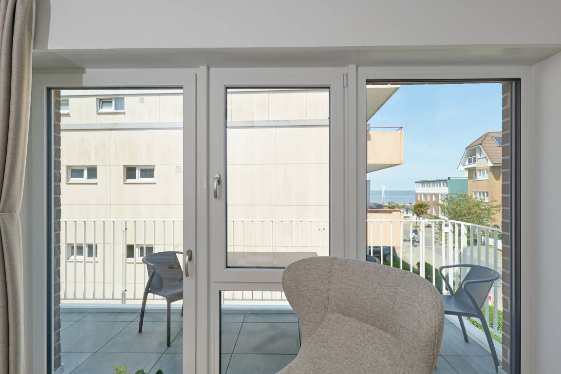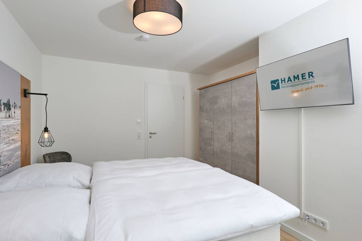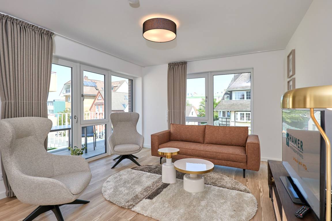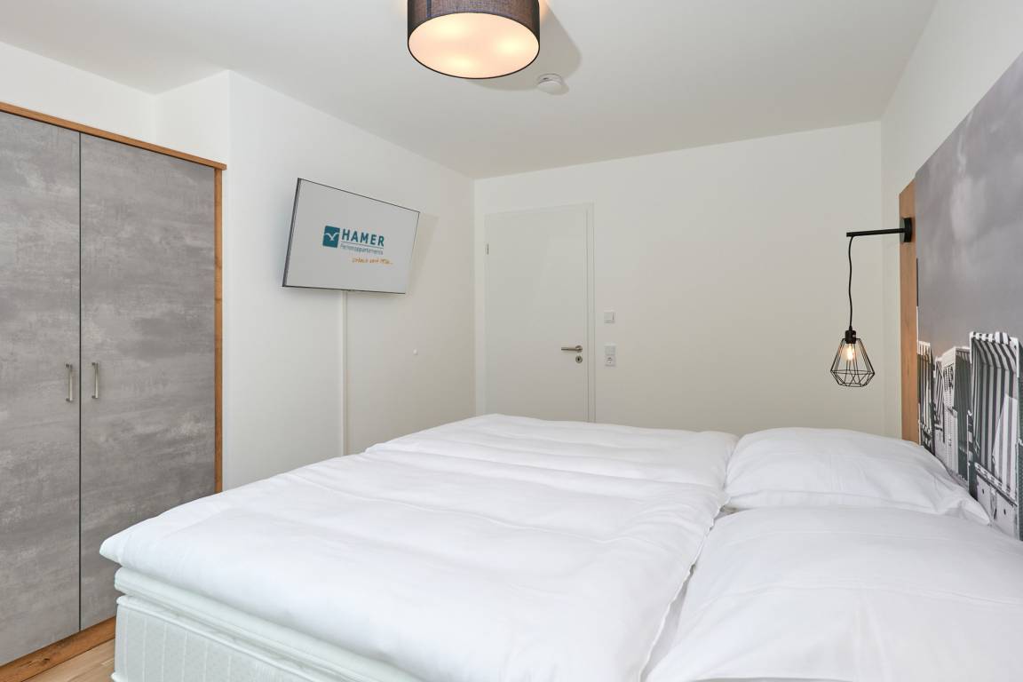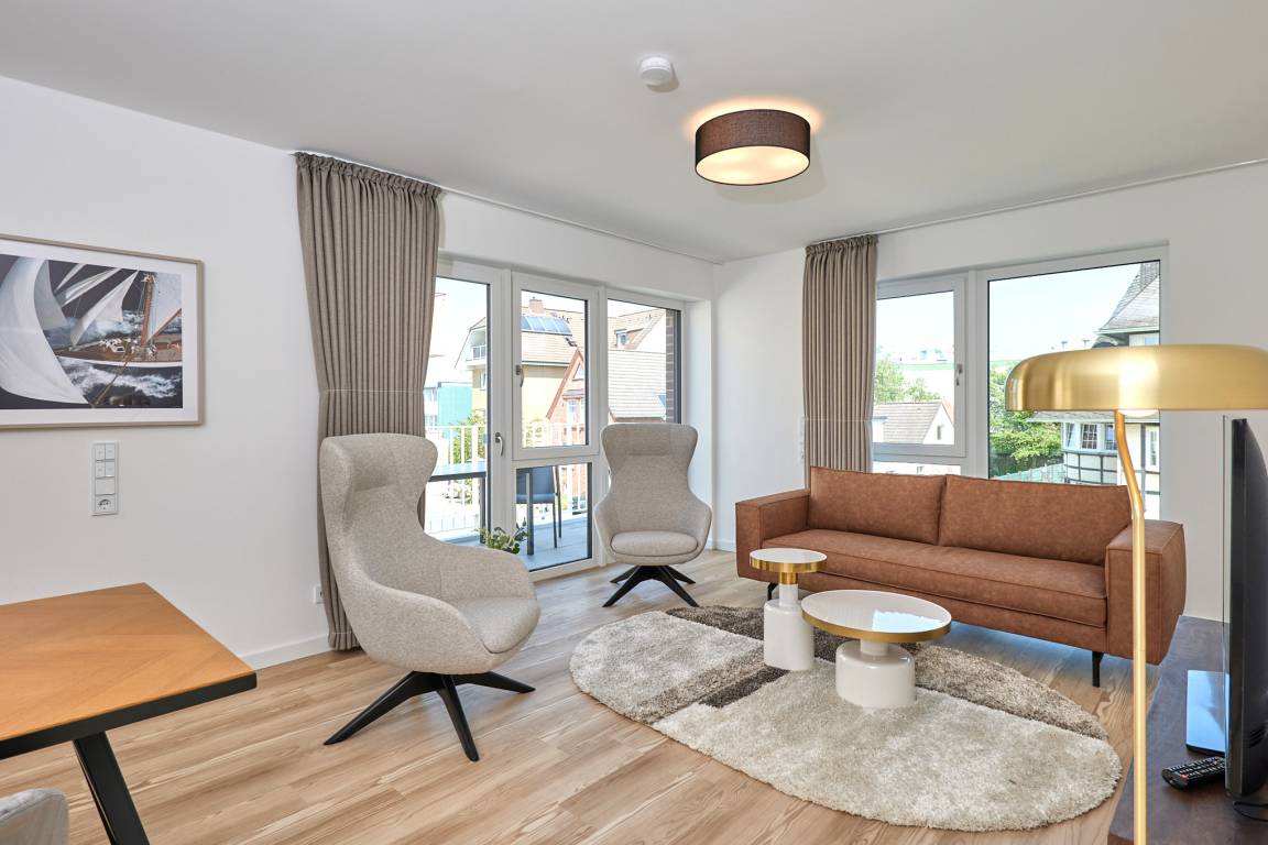 Neubau Mai 2023! Sehr schöne, moderne 3-Raum-Wohnung bis 4 Pers. voll ausgestattet auf ca. 91 m² in der 2.Etage gelegen, 2 Schlafzimmer mit komfortablen Doppelbetten (Bettwäsche inkl.) und Außenjalousien an allen Fenstern, ebenerdige Dusche/WC, Wohnzimmer mit großer Küchenzeile (Backofen, Geschirrspüler, Mikrowelle), 3x Kabel-TV, Radio, kostenfreies W-LAN-Internet, kleiner Balkon (nord) mit Teilseesicht, Personenaufzug, reservierter Pkw-Stellplatz in der Tiefgarage inkl., es sind keine Haustiere erlaubt und natürlich Nichtraucher. Durchfahrtshöhe Tiefgarage: 2,05m.