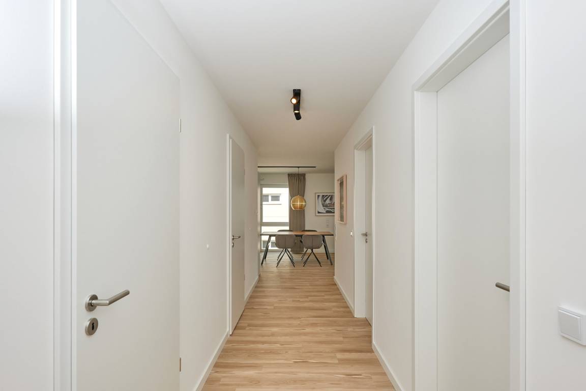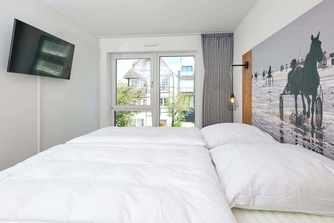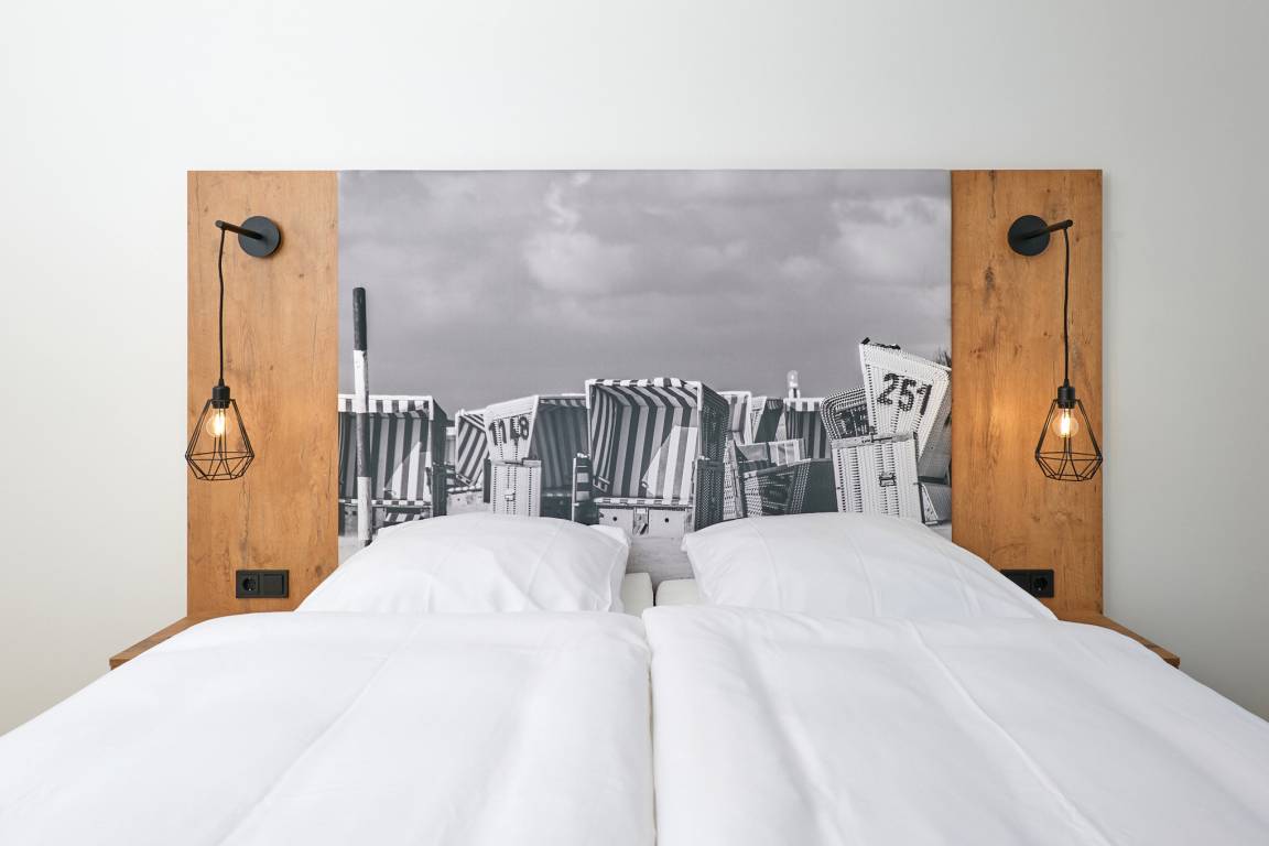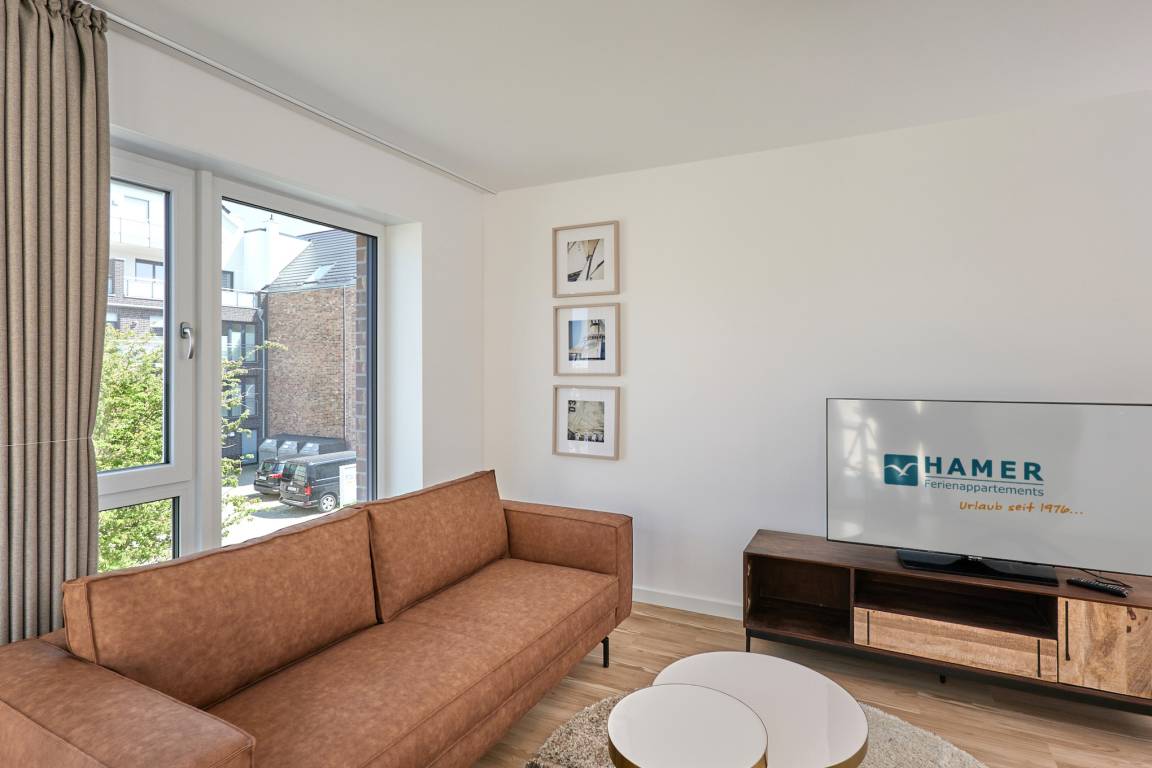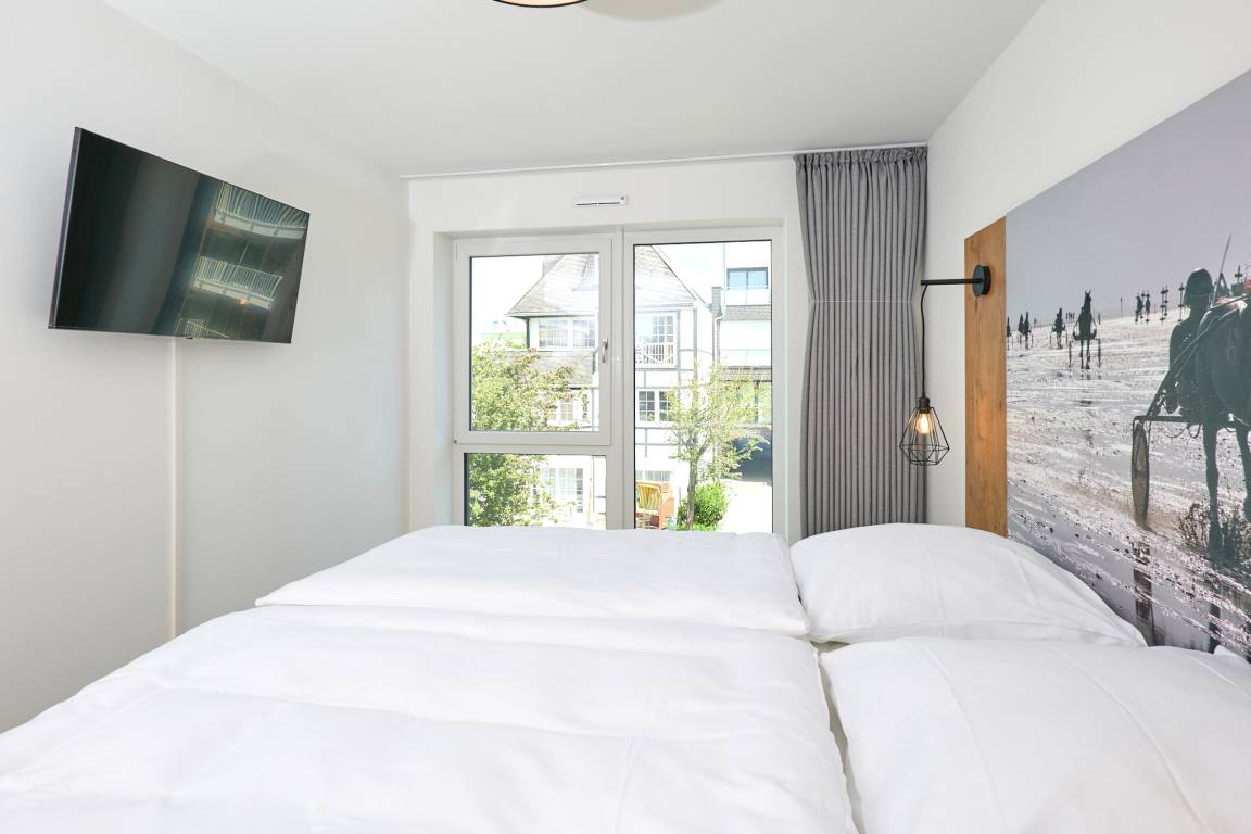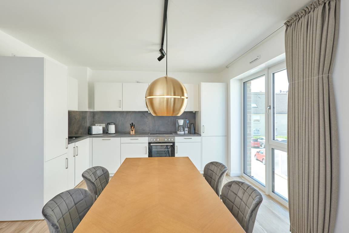 Neubau Mai 2023! Sehr schöne, moderne 3-Raum-Wohnung bis 4 Pers. voll ausgestattet auf ca. 91 m² in der 2.Etage gelegen, 2 Schlafzimmer mit komfortablen Doppelbetten (Bettwäsche inkl.) und Außenjalousien an allen Fenstern, ebenerdige Dusche/WC, Wohnzimmer mit großer Küchenzeile (Backofen, Geschirrspüler, Mikrowelle), 3x Kabel-TV, Radio, kostenfreies W-LAN-Internet, kleiner Balkon (nord) mit Teilseesicht, Personenaufzug, reservierter Pkw-Stellplatz in der Tiefgarage inkl., es sind keine Haustiere erlaubt und natürlich Nichtraucher. Durchfahrtshöhe Tiefgarage: 2,05m.