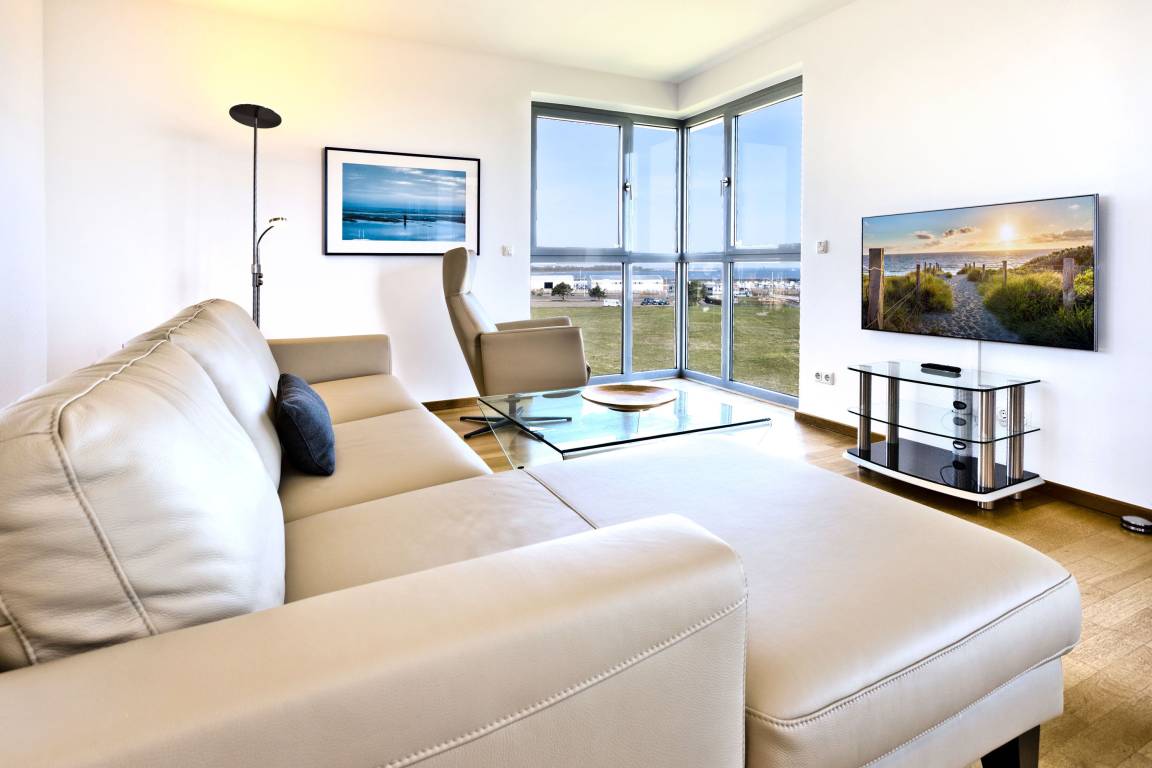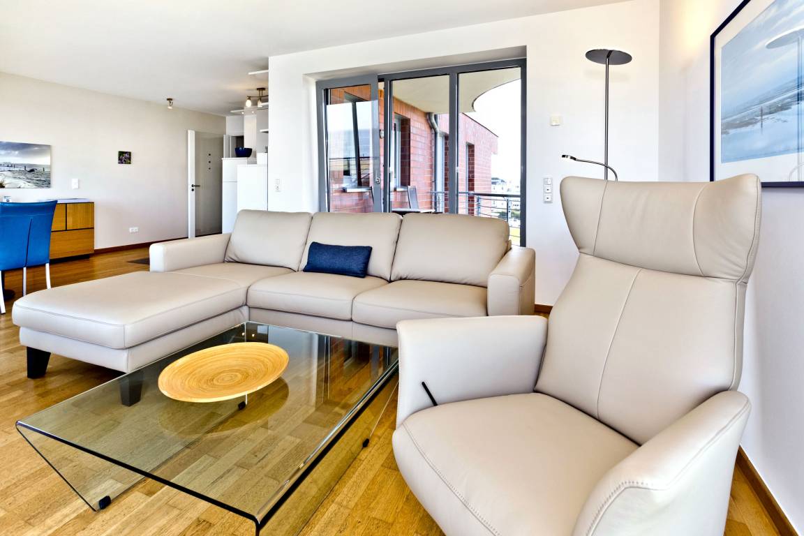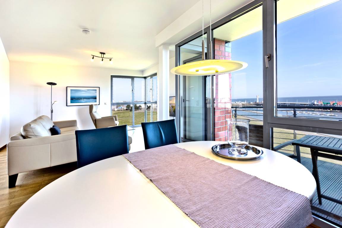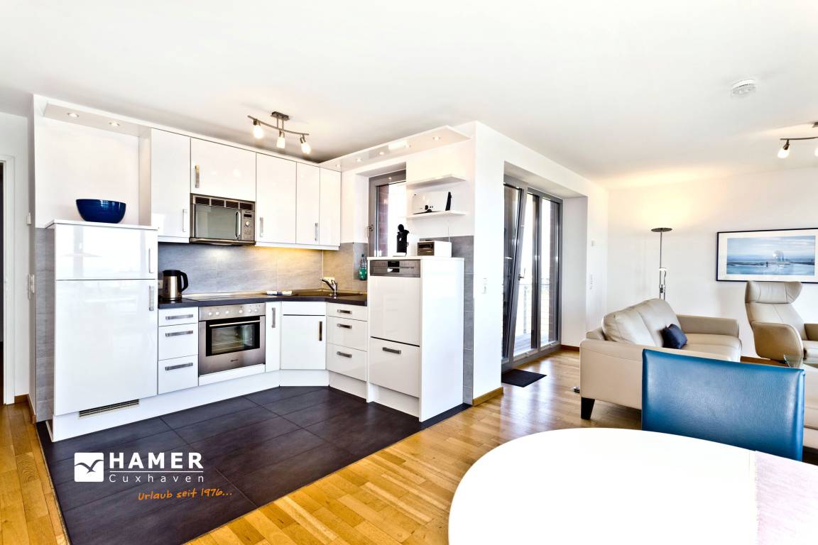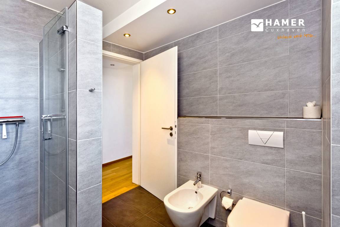 Traumwohnung! Aus allen drei Räumen dieser 105m² Wohnung in der 4.Etage haben Sie die Traumseesicht auf den Weltschifffahrtsweg. 1 Schlafzimmer mit Doppelbett, 1 Schlafzimmer mit Einzelbetten, Du/Wc, Föhn, Gäste-WC, begehbarer Kleiderschrank, großes Wohnzimmer mit komplett ausgestatteter Küchenzeile, 2 Balkone (nord+süd). Alle Räume sind hochwertig mit Parkett gestaltet und verfügen über Rollladen. Zur Wohnung gehört ein reservierter Stellplatz in der Tiefgarage (schmal, zur Wand). Nichtraucher, keine Haustiere erlaubt.