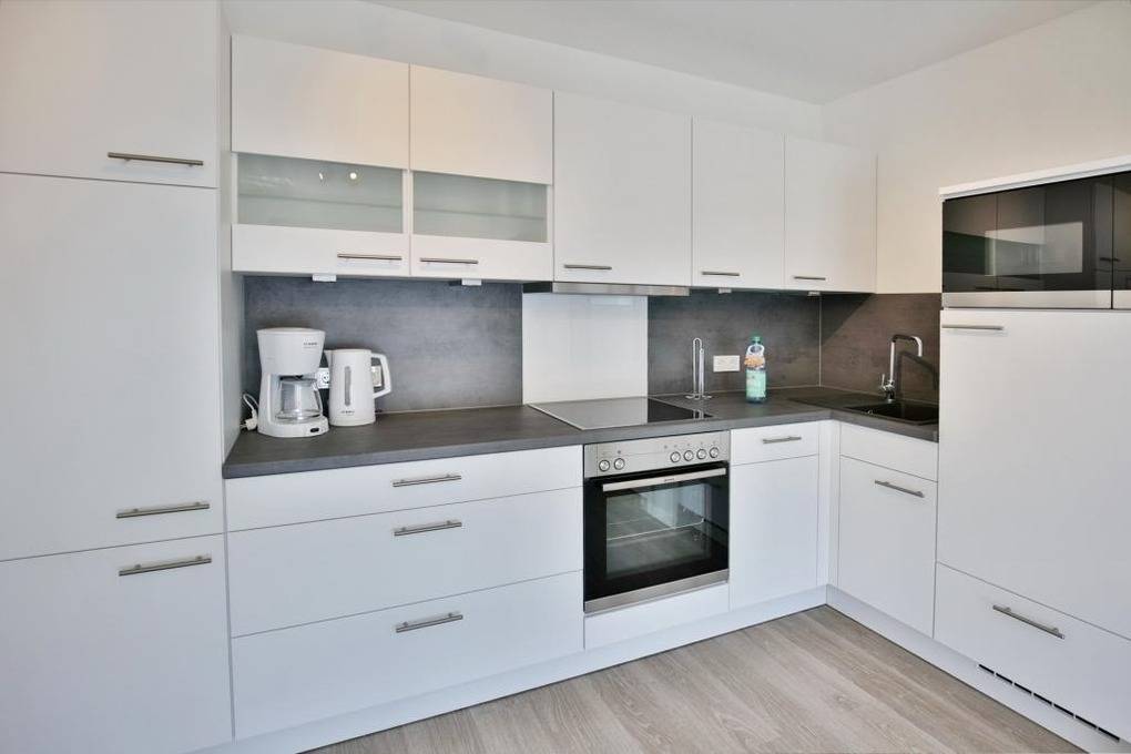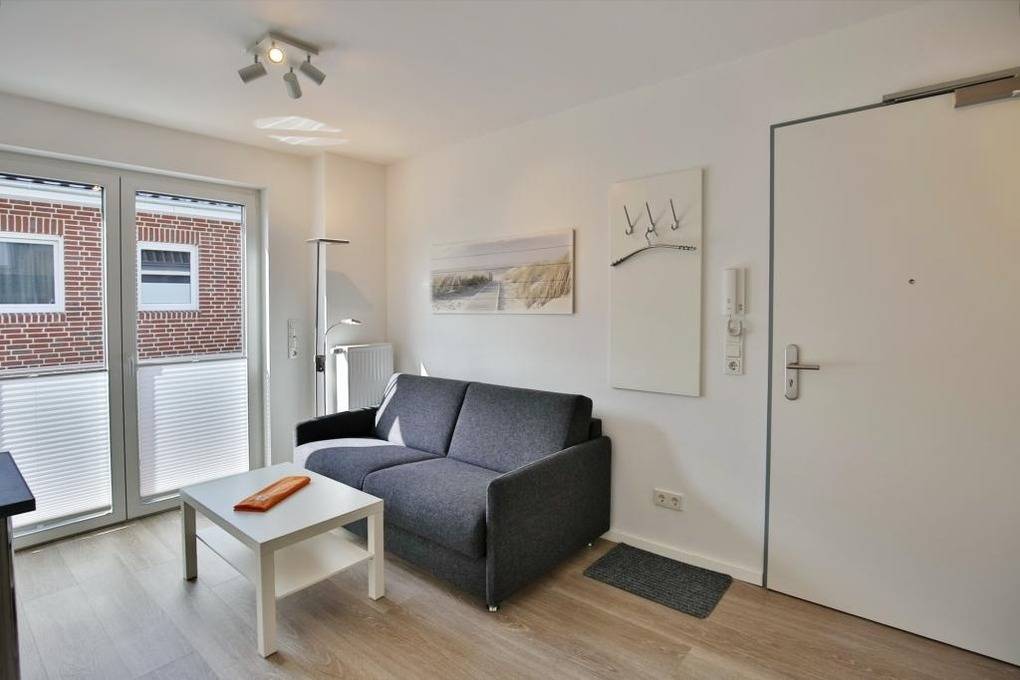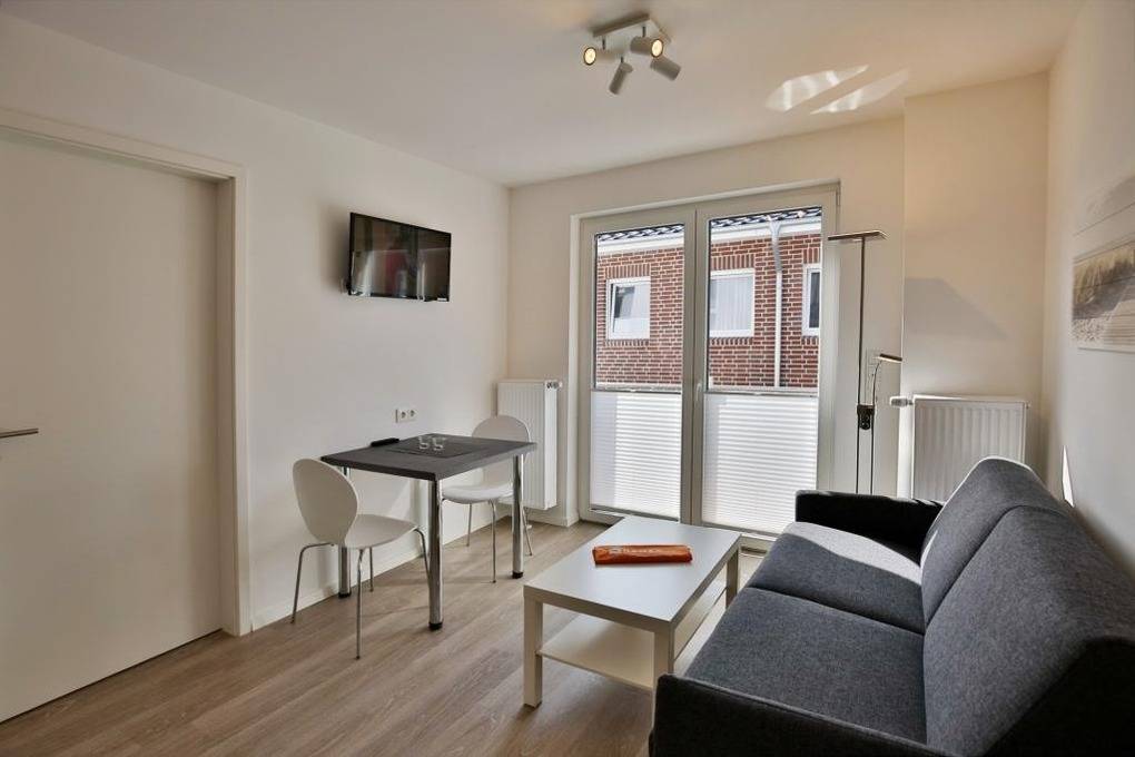 Schöne Ferienwohnung für 2 Pers. auf ca. 32m² im 1.OG mit Personenaufzug, Balkon (süd), 1 Schlafzimmer mit Doppelbett und TV, Wohnzimmer mit hochwertiger Küchenzeile und Vollausstattung (Geschirrspüler, Mikrowelle, Backofen, Gefrierfach), TV, kostenfreies W-LAN, ebenerdige Dusche, WC, Föhn, alle Räume mit Rollladen, Nichtraucherwohnung, Pkw-Stellplatz #6, keine Haustiere gestattet.