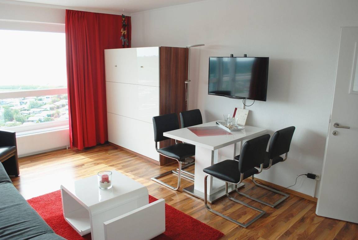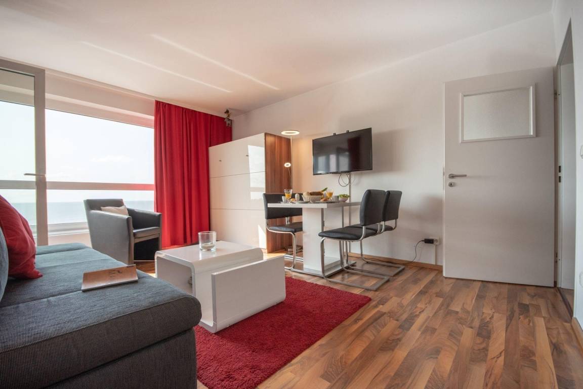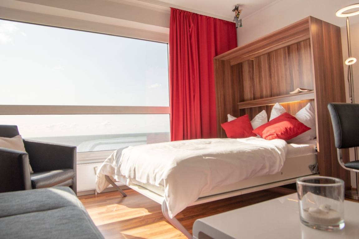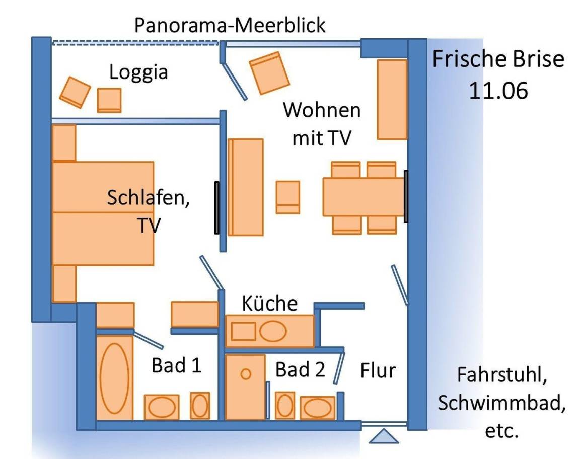 Diese Ferienwohnung für bis zu 4 Personen beeindruckt mit einem traumhaften Meerblick und befindet sich im 11. Stock, der bequem mit dem Fahrstuhl erreichbar ist. Sie verfügt über ein separates Schlafzimmer, das mit einem Doppelbett und einem Fernseher ausgestattet ist. Im Wohnzimmer finden zwei weitere Personen auf einem komfortablen Schrankbett Platz. Die Wohnung bietet zwei Badezimmer, eines mit Dusche und das andere mit Badewanne/WC, was zusätzlichen Komfort für die Gäste schafft. Zur Ausstattung gehört auch kostenloses schnelles Breitband-Internet, das einen stressfreien Aufenthalt ermöglicht. Bei schlechtem Wetter lädt das gemeinschaftlich nutzbare Schwimmbad ein. Es gibt ausreichenden Raum für die gesamte Familie, ideal für einen erholsamen Nordseeurlaub.