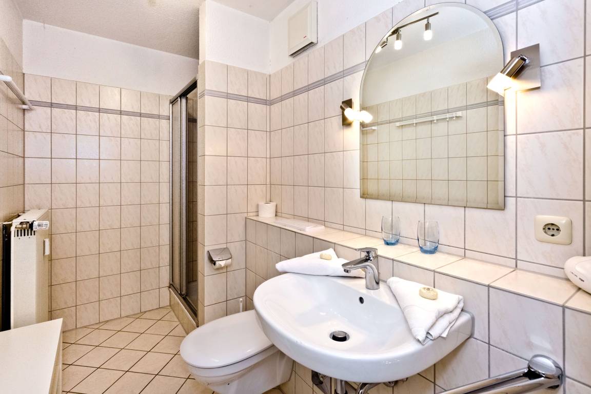 Komfortable 2-Raum-Wohnung mit uneingeschränkter Seesicht auf der 1. Etage mit Aufzug für 2 Personen. Wohnzimmer mit Küchenzeile ( Geschirrspüler, Backofen, etc. ). Wohnzimmer mit Kabel-TV und Radio, Esstisch für 4 Pers., kleiner Balkon zur Seeseite (nord), kleines Schlafzimmer mit 2 Einzelbetten [&] Rollläden, Dusche/WC, kostenfreies W-lan, nummerierter Pkw-Stellplatz #17 am Haus, keine Haustiere gestattet, Nichtraucher.