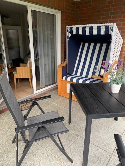 Strandburg, Whg. 3, 2-Raum, ca. 44m², EG, barrierefreie Wohnung mit Terrasse und Strandkorb am Strand, bis zu 2 Personen plus Kind, entspannt Urlauben