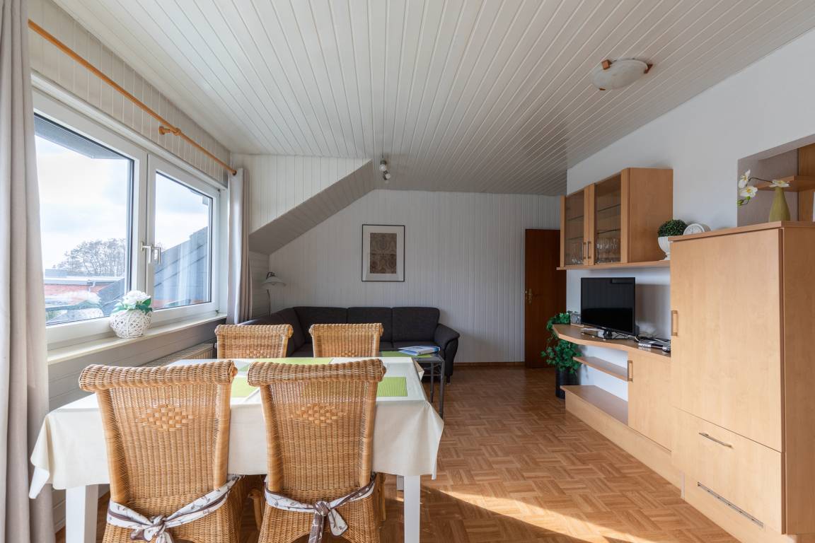 Die Wohnung 5, im Haus Windböe, befindet sich in einer kinderfreundlichen und verkehrsberuhigten Straße. In nur 700 Metern erreichen Sie die Nordsee mit dem Sandstrand und die Promenade.