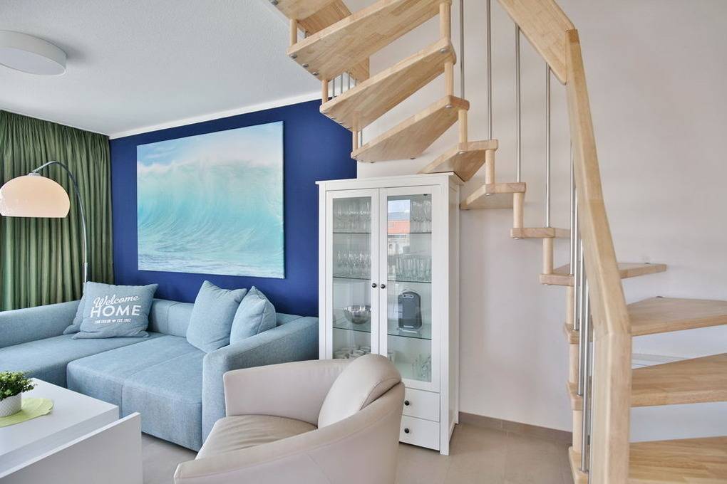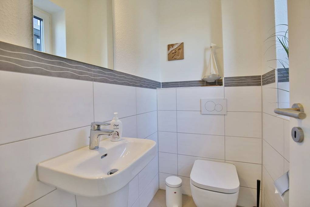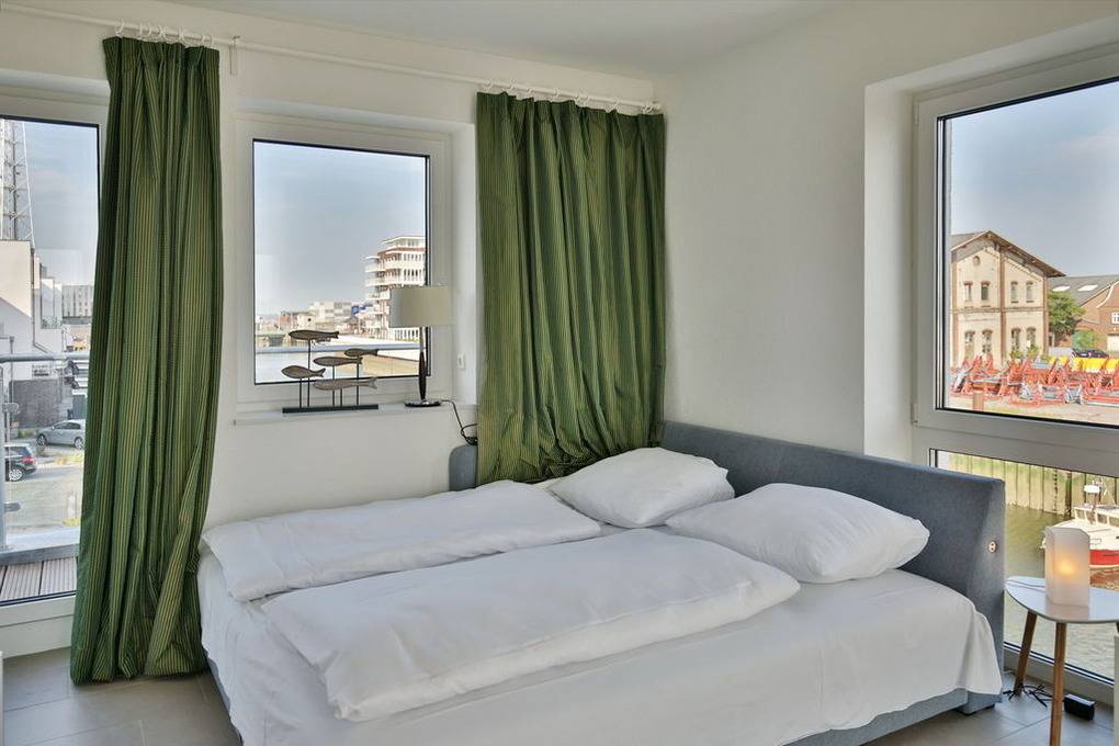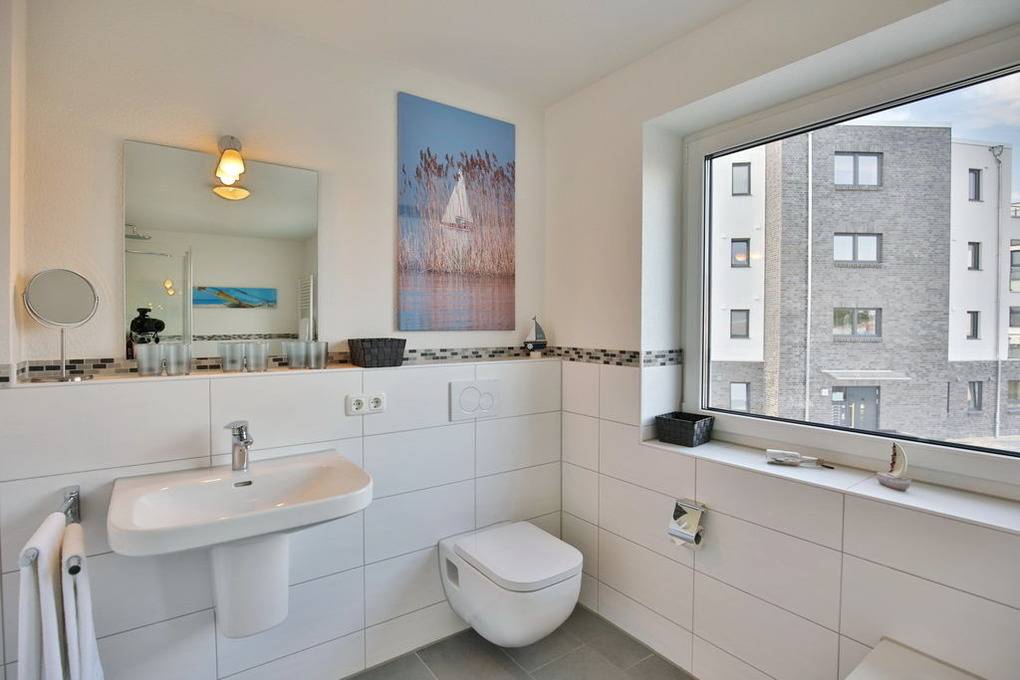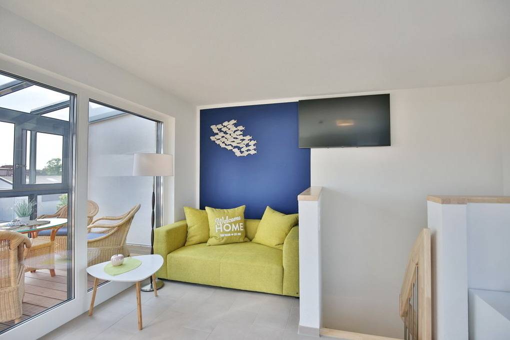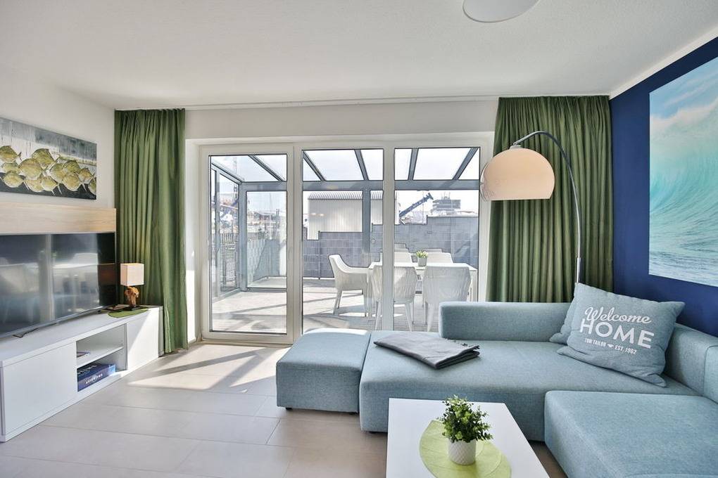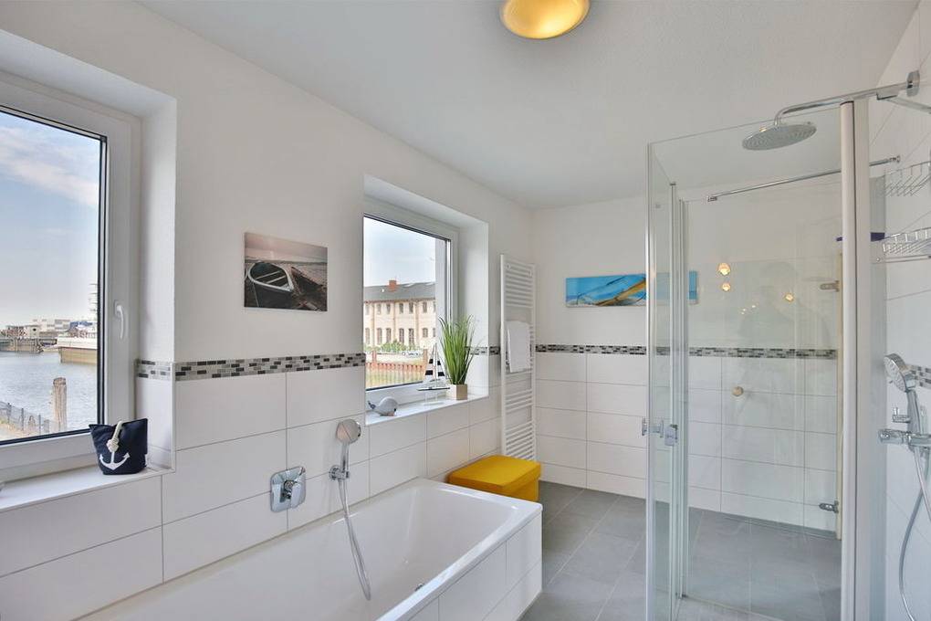 Exklusiver Luxusneubau direkt am Wasser für bis zu 6 Personen auf 3 Etagen. EG: Großzügiges Wohnzimmer mit TV und angrenzendem Wintergarten (süd), offene Küche mit Vollausstattung, Gäste-WC und Garderobe. 1.OG: 2 Schlafzimmer mit Doppelbetten und TV, Bad mit Wanne/Dusche/WC und eigener Sauna mit Blick auf die Boote im Yachthafen, Abstellraum mit Waschmaschine und Trockner. 2.OG: Lichtdurchflutete Lounge mit TV, Ecksofa (kann als Doppelbett gestellt werden kann), separates Relax-Sofa, kleiner Balkon (nord) und einem großen Wintergarten (süd). Alle Räume verfügen über eine Fußbodenheizung, teilweise Insektenschutz an den Fenstern, kostenfreies W-Lan, Fahrradschuppen mit eBike-Station, ein KFZ-Stellplatz direkt am Haus, keine Haustiere gestattet, Nichtraucher.