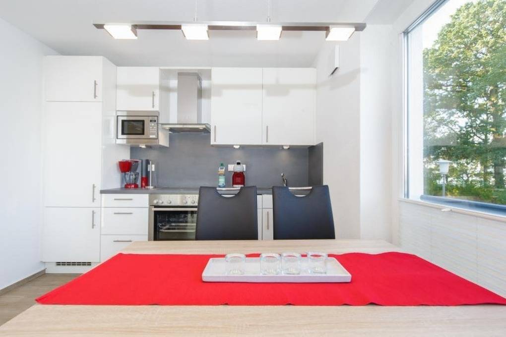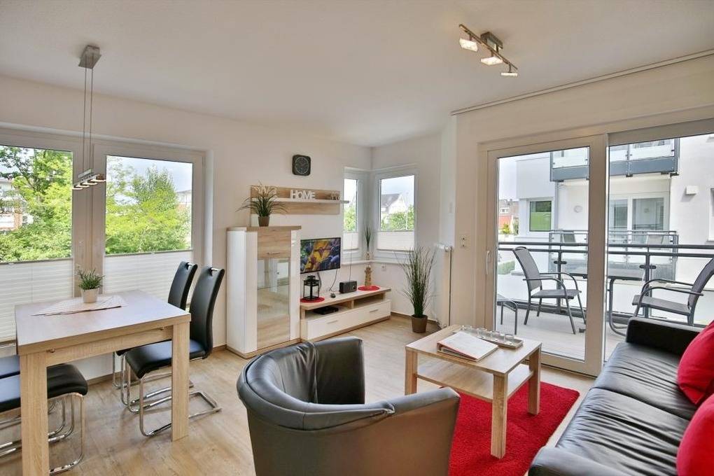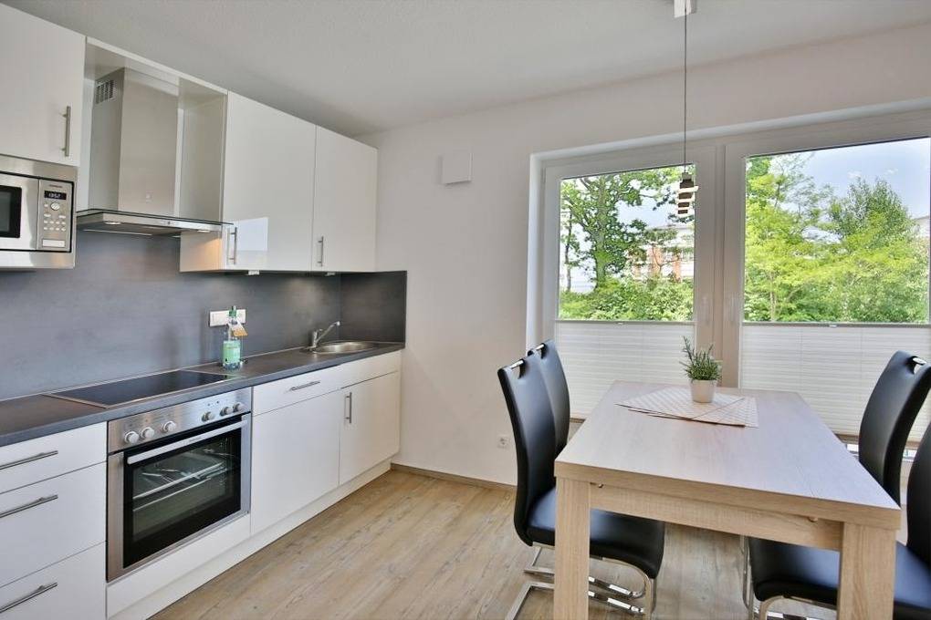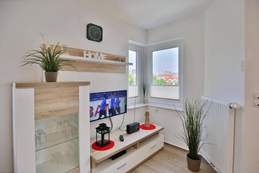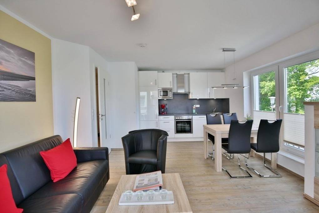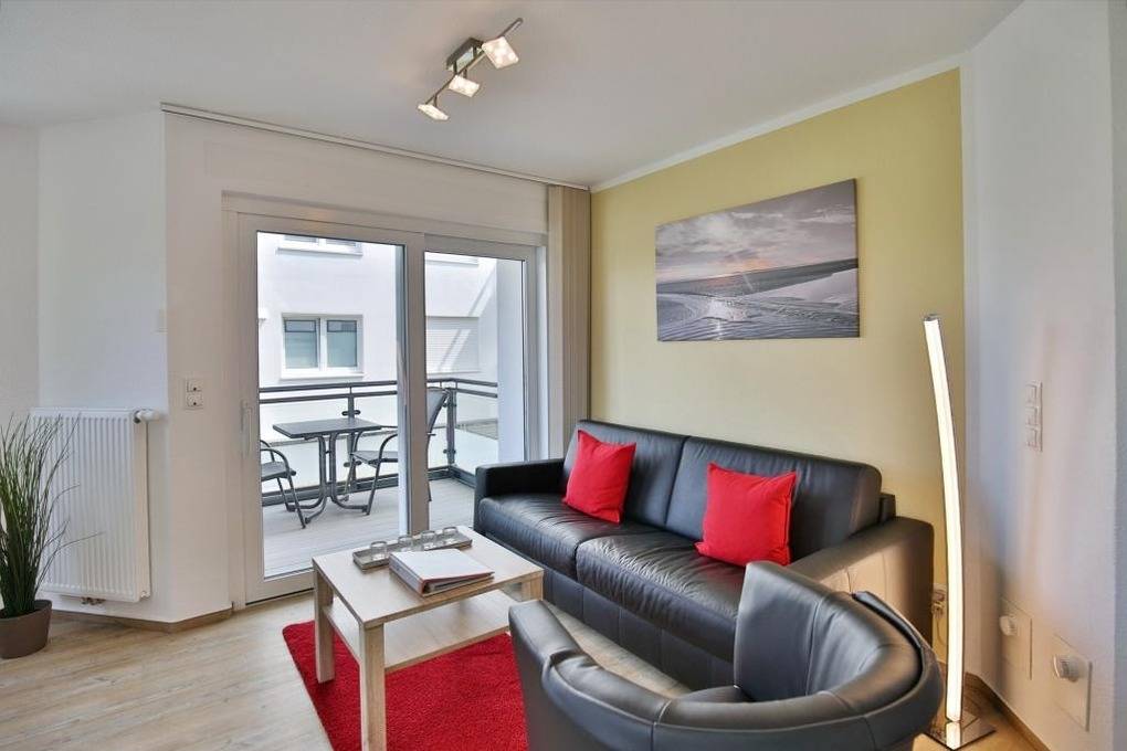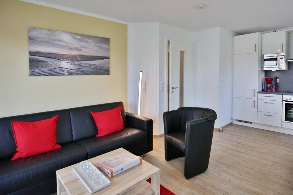 Geschmackvolle 2-Raum-Neubau-Wohnung mit eingeschränkter Seesicht, zentrumsnah in Duhnen (1. Etage). Vollständige Küchenzeile mit Mikrow., Back., Geschirrspüler etc. Wohnzimmer mit Balkon (nord/ost), 2x SAT-TV, kostenloses W-Lan, Stereoanlage, separates Schlafzimmer mit Außenjalousien, ebenerdige Dusche/WC, reservierter Pkw-Stellplatz in der Tiefgarage #1, keine Haustiere und natürlich Nichtraucher.