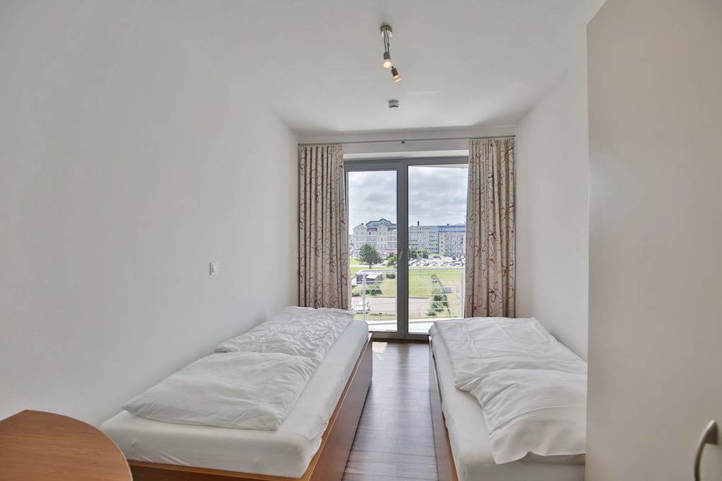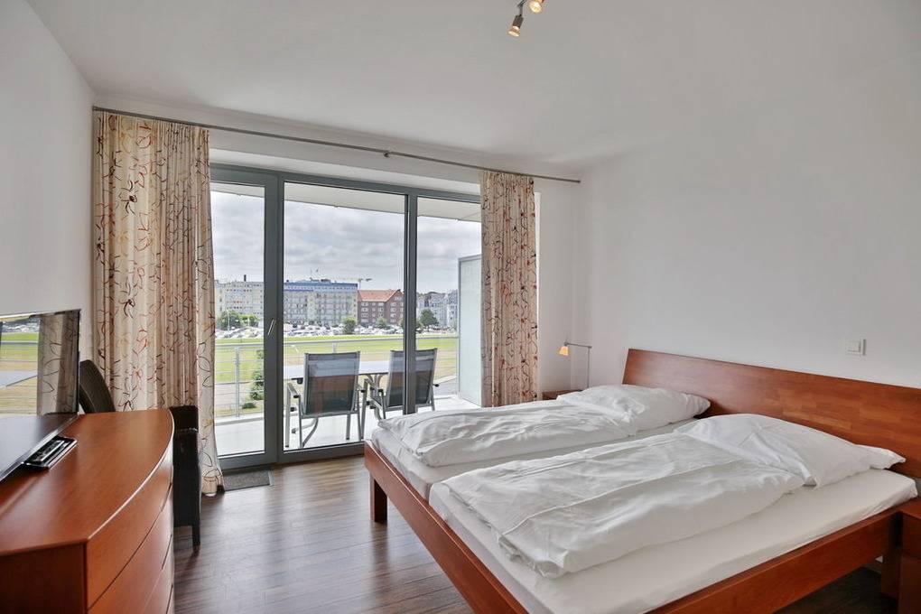 102m² Wohnung in der 3.Etage. Hier haben Sie die Traumseesicht auf den Weltschifffahrtsweg und Yachthafen. 1 Schlafzimmer mit Doppelbett, 1 Schlafzimmer mit 2 Einzelbetten, beide Schlafzimmer mit Rollladen, 1 Bad/Du/Wc und 1 Gäste-Wc, großes Wohnzimmer mit komplett ausgestatteter Küchenzeile, 2 große Balkone (nord+süd). Zur Wohnung gehört ein reservierter Pkw-Stellplatz am Haus. Nichtraucher, keine Haustiere erlaubt. Fahrräder können auch bequem und sicher im ebenerdigen Fahrradraum des Nachbargebäudes abstellt werden (separater Schlüssel).