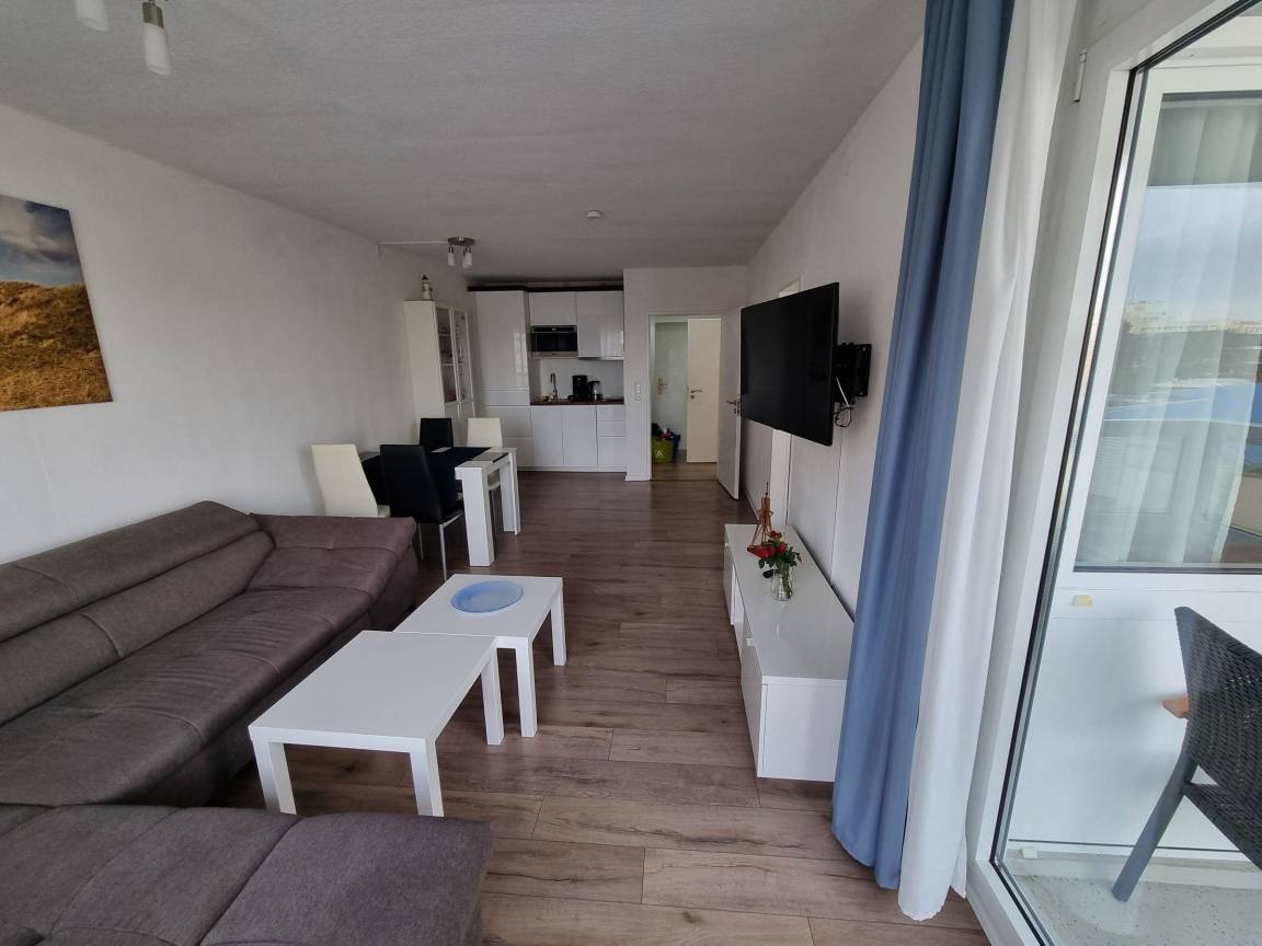 Das frisch sanierte Ferienapartment bietet eine ansprechende Ausstattung und Teil-Seesicht. Es verfügt über ein separates Schlafzimmer mit einem Doppelbett (160 x 200 cm) sowie einem ausziehbaren Tagesbett (160 x 200 cm). Im lichtdurchfluteten Wohnzimmer steht ein gemütliches, ausziehbares Schlafsofa bereit. Die moderne Pantryküche ist gut ausgestattet und eignet sich hervorragend für gemeinsame Kochabende. Das Badezimmer bietet eine Regendusche sowie eine zusätzliche Handbrause. Im Wohnzimmer befindet sich ein Fernseher mit WLAN-Anschluss für entspannte Abende.