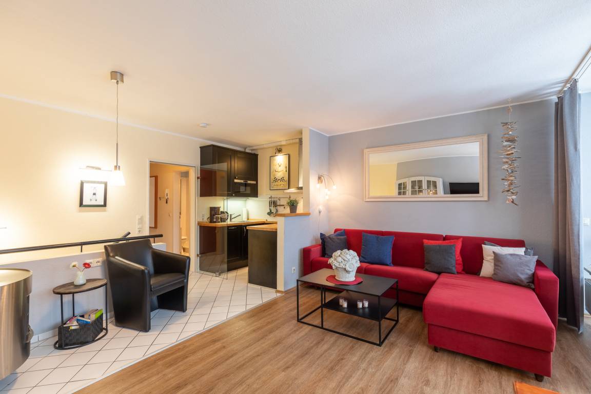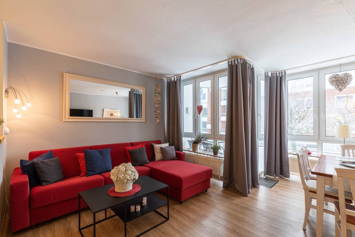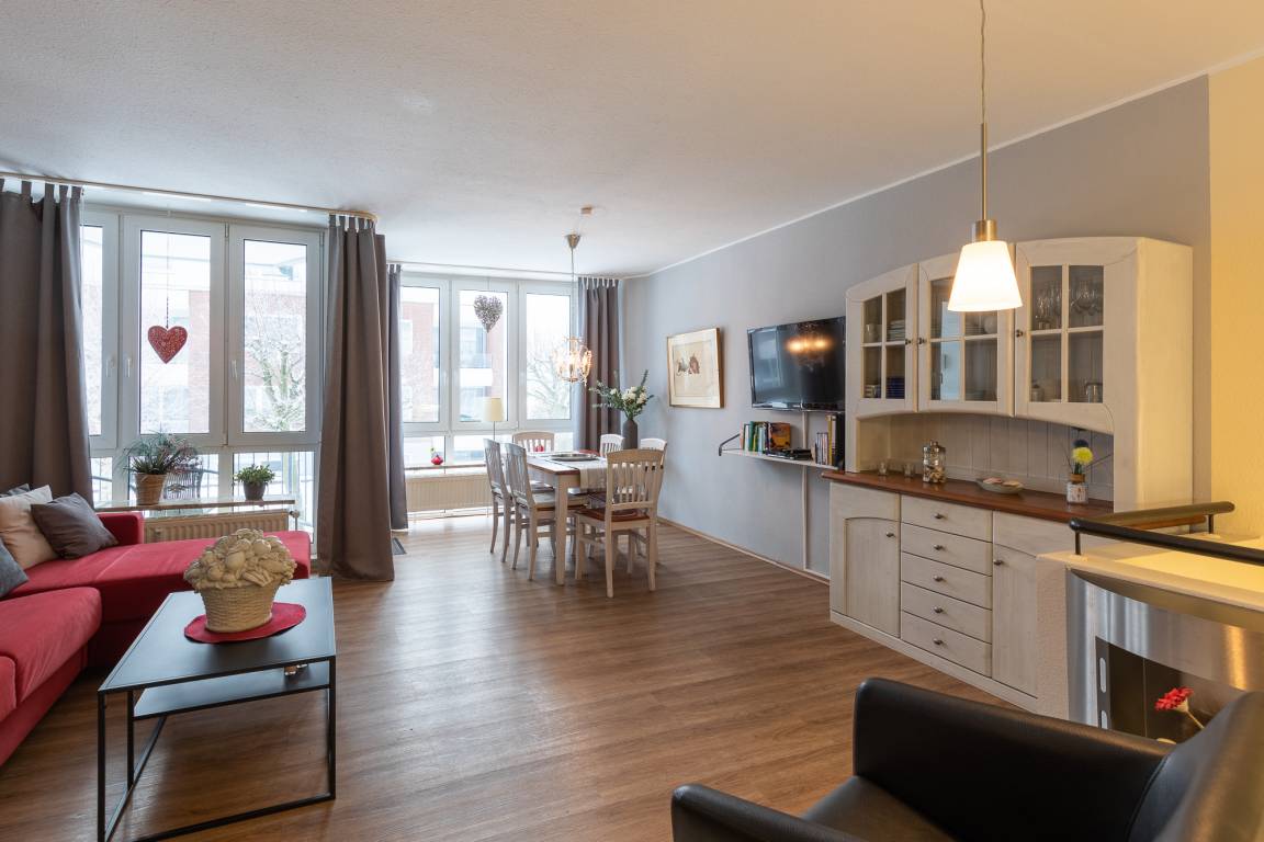 Die Wohnung 415 befindet sich in einer kinderfreundlichen Ferienanlage. In nur 800 Metern erreichen Sie die Nordsee mit dem Sandstrand, die Promenade, diverse Restaurants, Einkaufsmöglichkeiten, die Duhner Heide und Wanderwege.