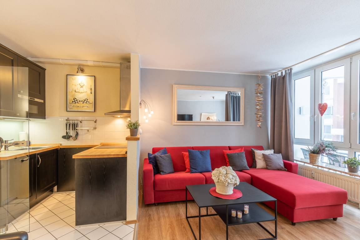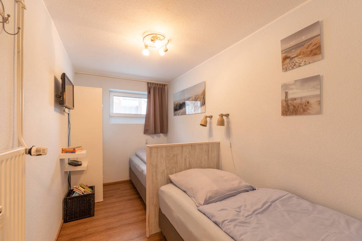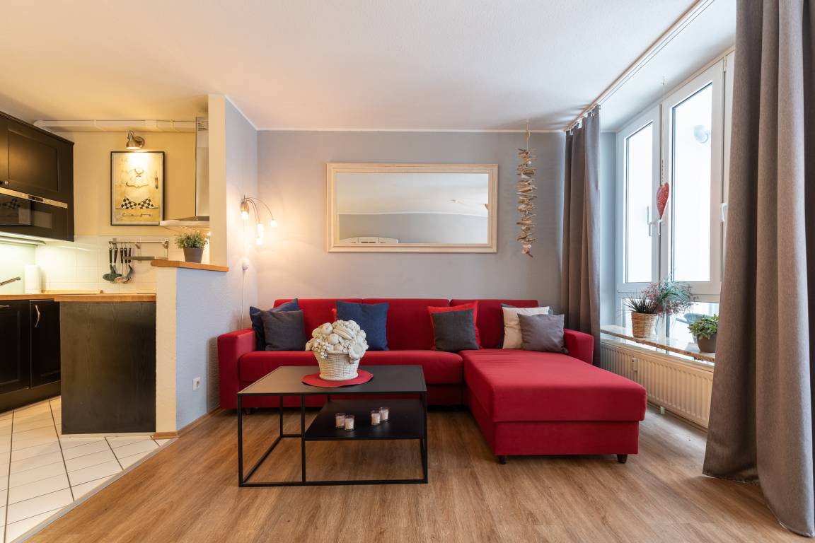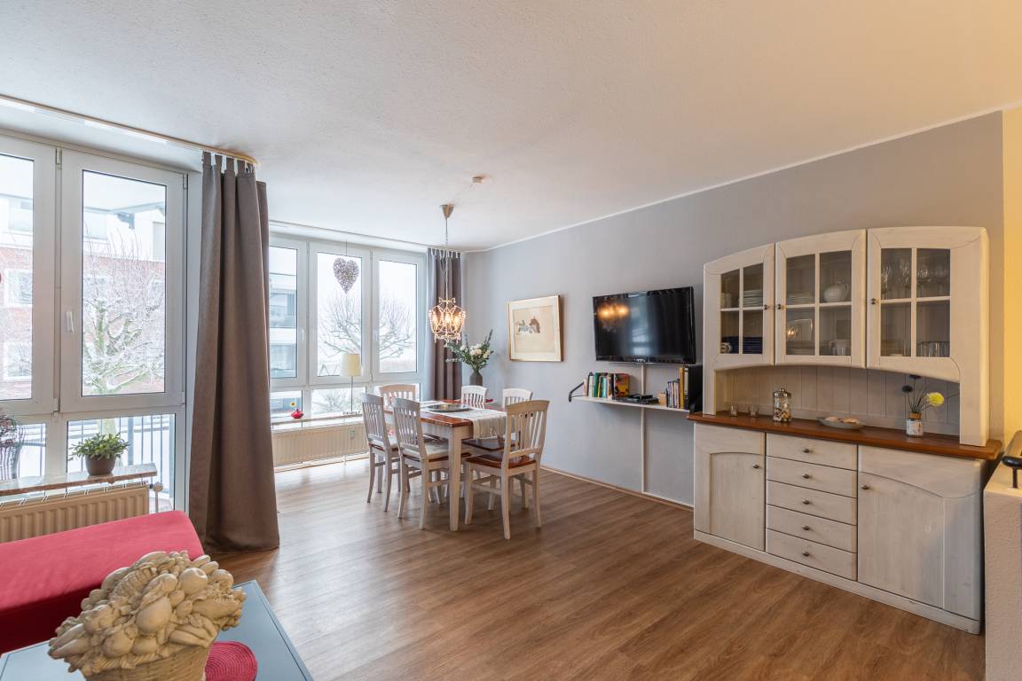 Die Wohnung 415 befindet sich in einer kinderfreundlichen Ferienanlage. In nur 800 Metern erreichen Sie die Nordsee mit dem Sandstrand, die Promenade, diverse Restaurants, Einkaufsmöglichkeiten, die Duhner Heide und Wanderwege.