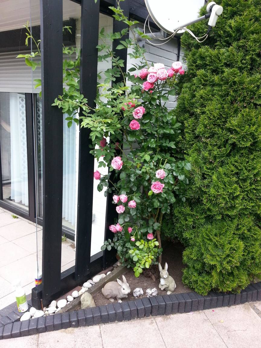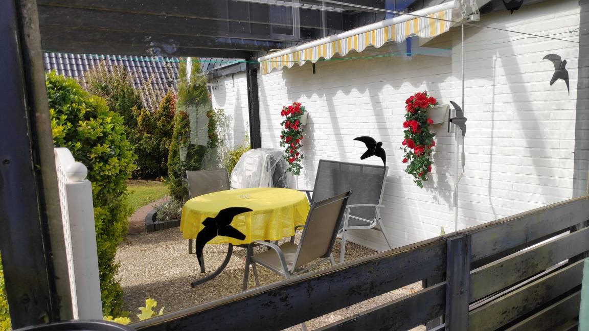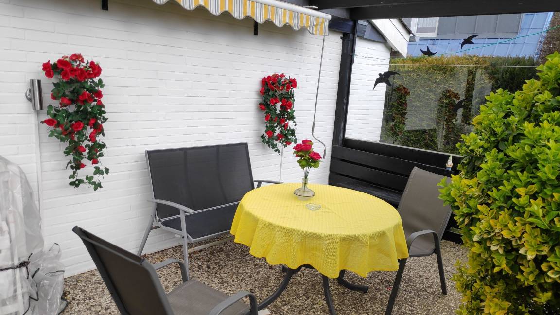 Umgeben von einer bunten Hecke bieten die Terrassen Sonne satt. Eine Markise und ein Sonnenschirm bieten bei Bedarf Schutz. Die Überdachung einer Terrasse mit den seitlichen Glasschutz erlaubt auch an windigen Tagen draußen zu sitzen. Ausreichend Stühle, 2 Tische, eine Liege und 2 Relax-Stühle bieten Platz für jeden Geschmack.