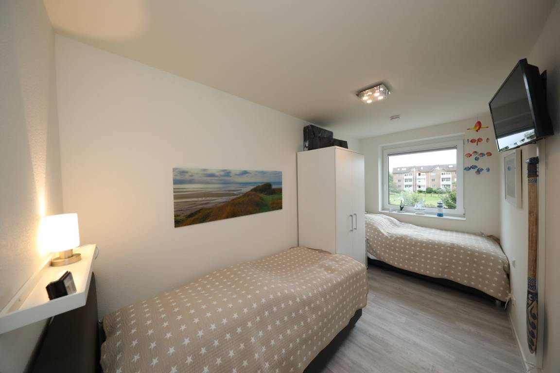 Die Wohnung verfügt über zwei Schlafzimmer mit insgesamt 4 Schlafmöglichkeiten. In einem der Schlafzimmer finden Sie ein großes Doppelbett, in dem anderen stehen 2 Einzelbetten bereit.