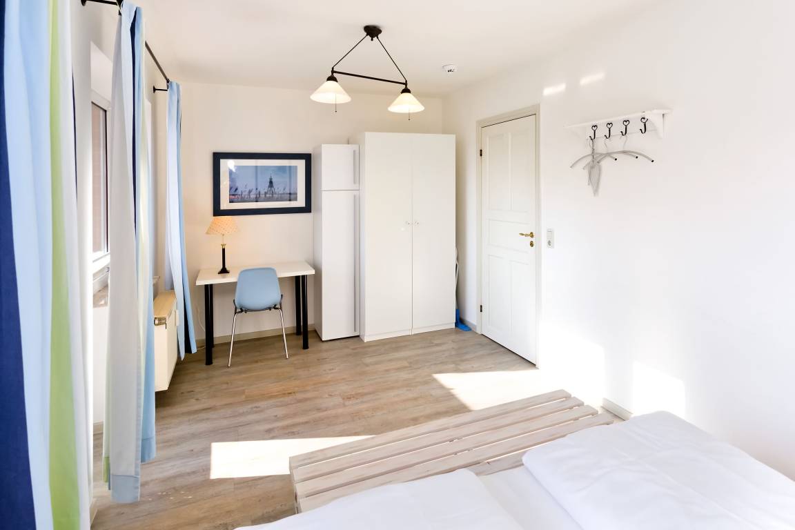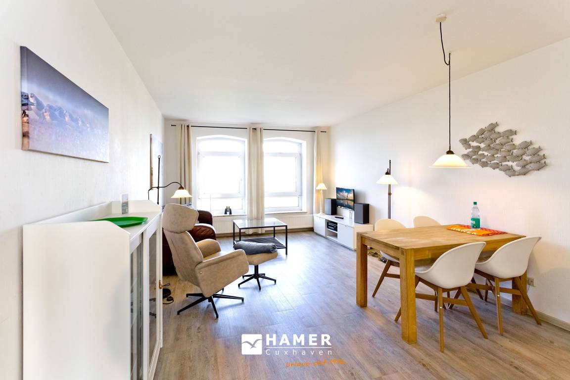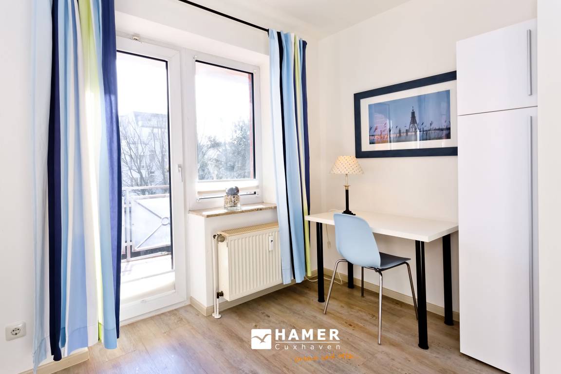 Schöne 2-Raum-Wohung mit Seesicht auf den Weltschifffahrtsweg für max. 2 Personen auf der 3. Etage ohne Aufzug. Wohnzimmer mit vollausgestatteter Küchenzeile ( Geschirrspüler, Mikrowelle mit Backfunktion, 2-Platten-Ceranfeld), Kabel-TV, kostenfreies W-Lan, ebenerdige Dusche [&] WC. Schlafzimmer mit Doppelbett und Zugang zum sonnigen Südbalkon. PKW-Stellplatz #7 im Innenhof (Durchfahrtshöhe ca. 1,85m), keine Haustiere gestattet, Nichtraucher.
