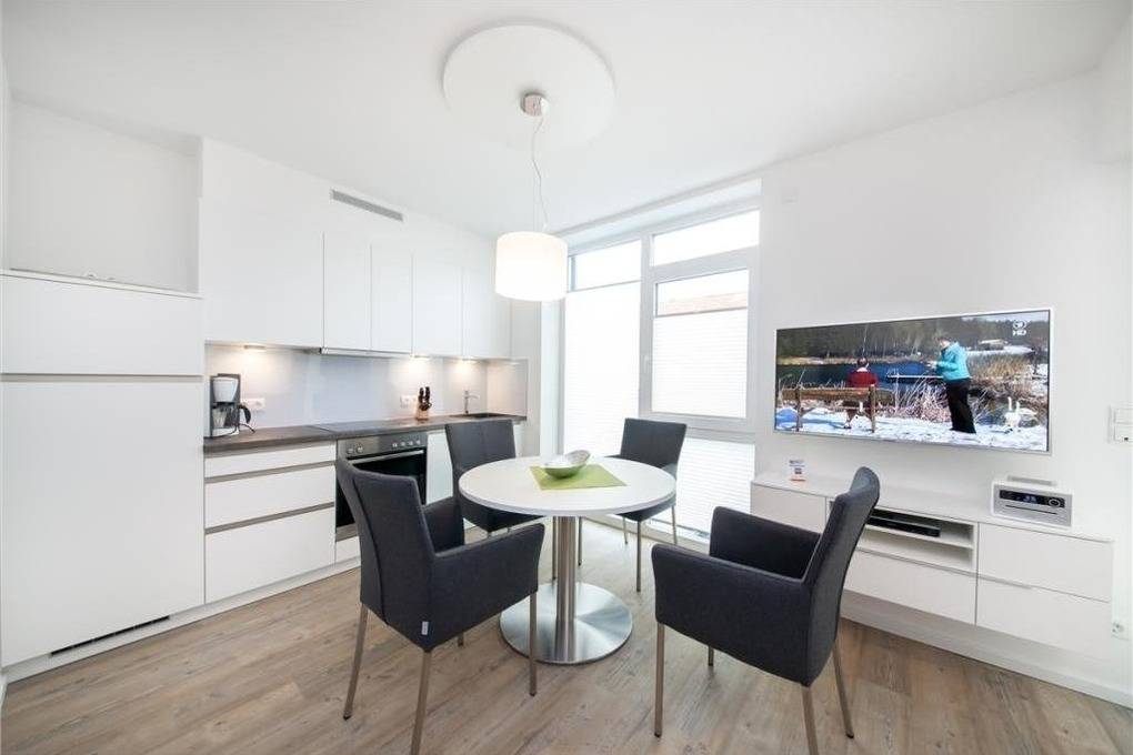 Moderne 2-Raum-Wohnung -1.Etage- im Herzen Duhnens gelegen. Die vollständige Küchenzeile mit Mikro, Back., Geschirrsp. etc. garantiert höchsten Komfort. Wohnzimmer mit schönem Balkon, 3D-SAT-TV, Blue-Ray-DVD, Kompaktanlage, kostenloses W-Lan-Internet, separates Schlafzimmer mit Außenjalousien und hochwertigem Doppelbett, allergikerfreundlich, ebenerdige Dusche/WC, Föhn, reservierter Außenstellplatz vor dem Haus, keine Haustiere und natürlich Nichtraucher.