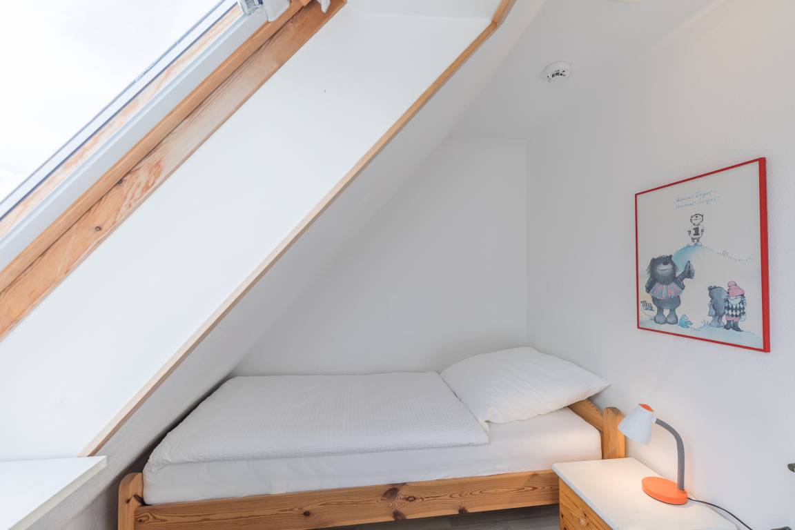 Die 4 Zimmer Studiowohnung (1. Obergeschoss) ca. 76m² ist für bis zu 5 Personen ausgestattet, helles großes Wohnzimmer mit Sofa, Flatscreen TV, Essplatz mit 5 Stühlen und Zugang zum Süd Balkon (mit Gartenmöbel), Küchenzeile (Backofen, 4 - Plattenherd, Mikrowelle, Kühlschrank, Kaffeemaschine, Wasserkocher, Toaster), 2 Bäder mit jeweils Dusche und WC, großer Flur mit Treppe in das Dachgeschoss, 1 Schlafzimmer mit Doppelbett (140x200) im 1. Obergeschoss, folgende Schlafzimmer befinden sich im Dachgeschoss: 1 Schlafzimmer mit Einzelbett (90x200), 1 Schlafzimmer mit Doppelbett (2 Matratzen mit 90x200), PKW-Stellplatz am Haus, Nichtraucher, es sind keine Tiere erlaubt.