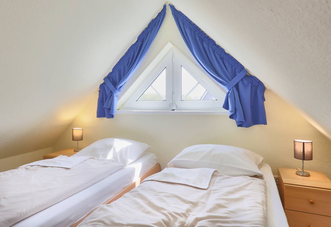 Die geräumige 3-Raum-Ferienwohnung erstreckt sich über ca. 64m² und bietet Platz für bis zu 4 Personen. Sie verfügt über ein separates Schlafzimmer mit einem gemütlichen Doppelbett sowie ein "Kinderzimmer" mit zwei Einzelbetten im Dachgeschoss. Für die kleinen Gäste gibt es einen speziellen Spielbereich im ausgebauten Dachgeschoss, wo sie sich austoben können.
