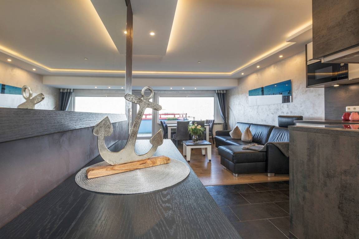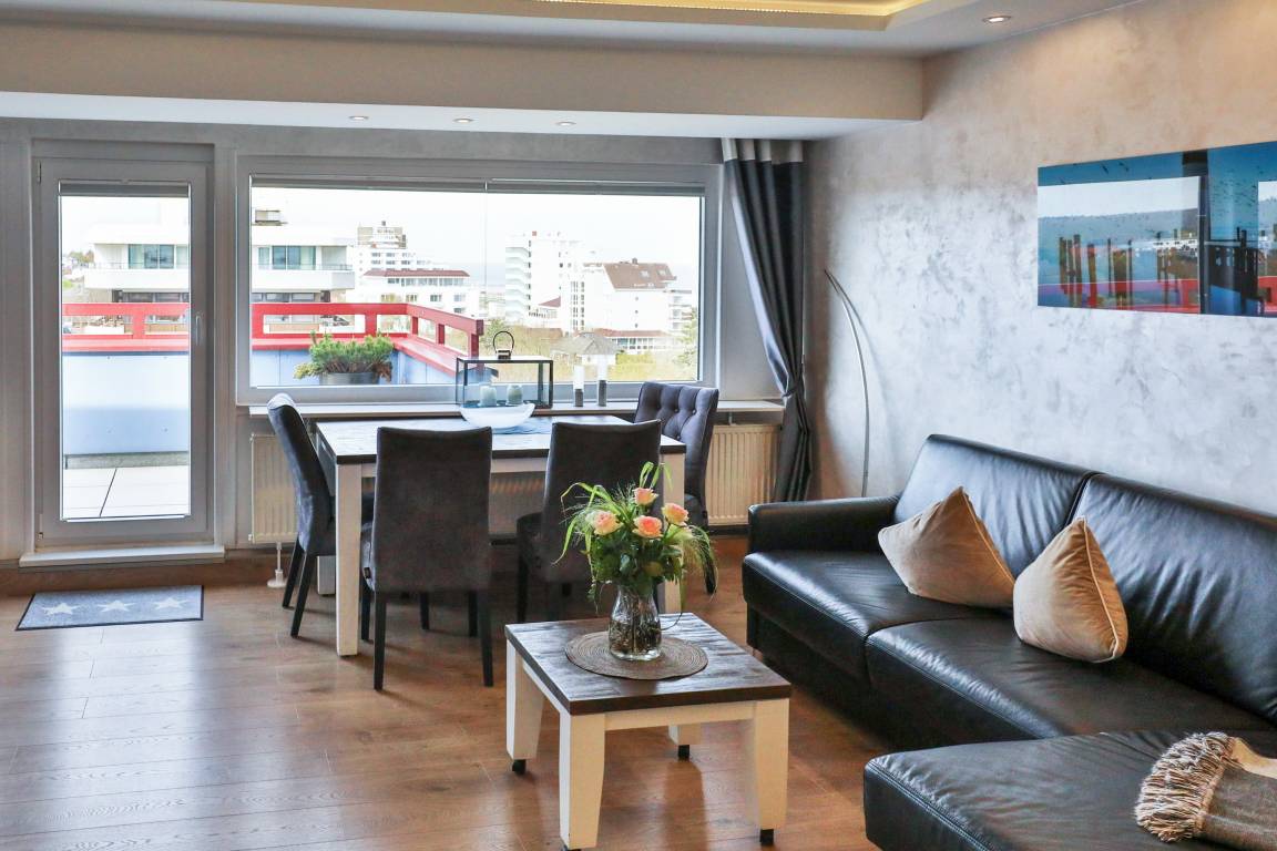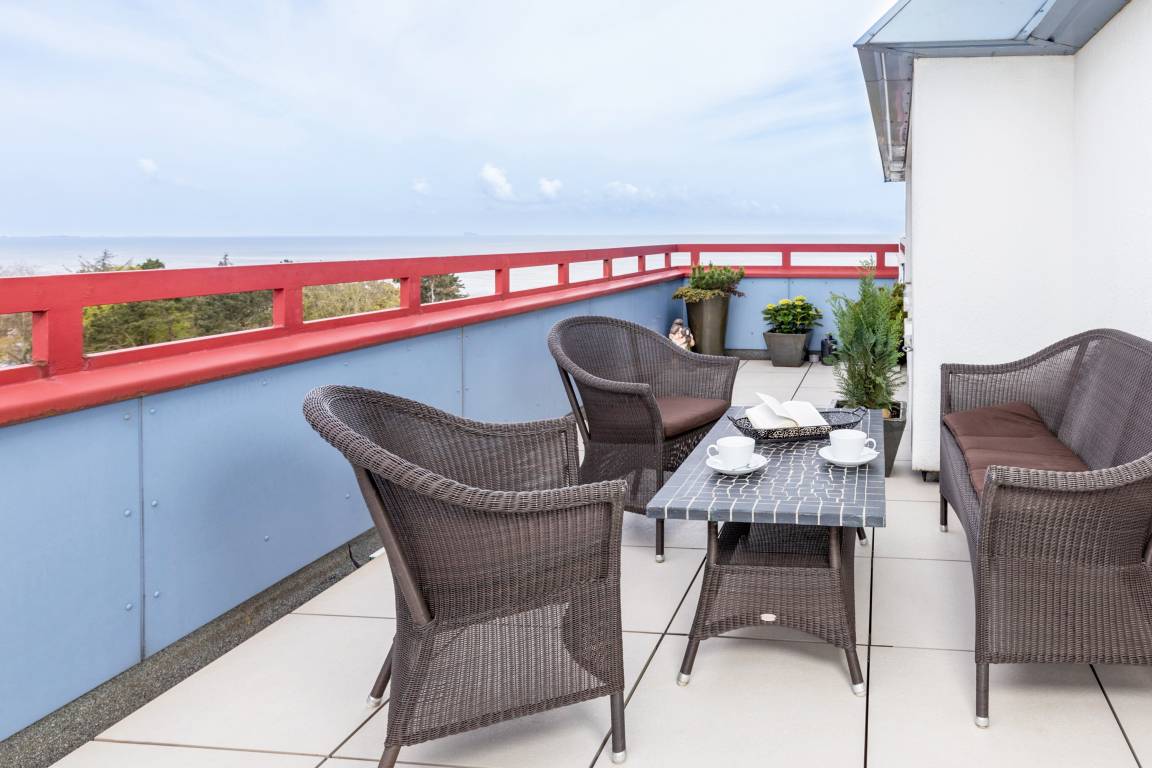 Das Penthousewohnung befindet sich nicht im Haus Hanseatic sondern in Terrassenhaus in Duhnen, ist ein 2-Raum-Apartment im 8 Obergeschoss für bis zu 4 Personen mit 50 qm und 50 qm Terrasse mit Strandkorb in Südwestlage mit Meerblick bietet Ihnen vormittags Sonne bis abends Sonnenuntergang.