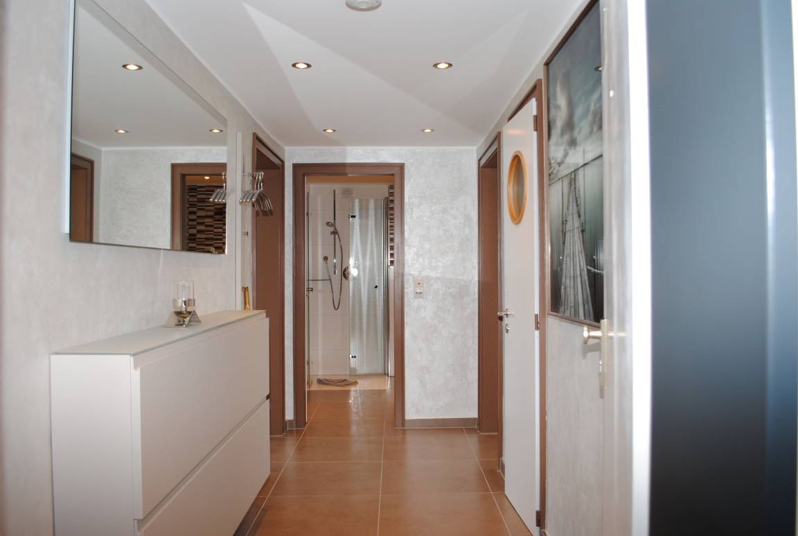 Das Apartment besteht aus einem Schlafzimmer mit 1 Doppelbett, einem Wohnbereich mit zusätzlichem Sclafsofa für 2 Personen und einem Badezimmer mit Dusche sowie WC. Die Ferienwohnung beinhaltet eine gut ausgestattete offene Küche.