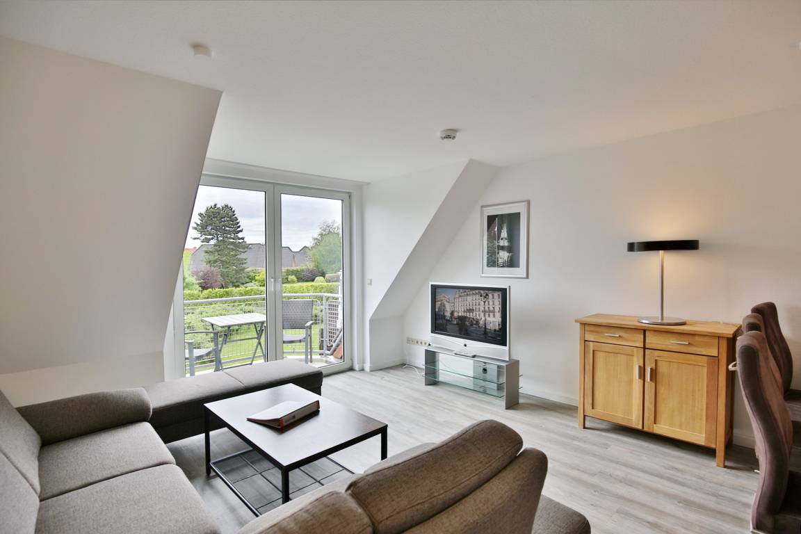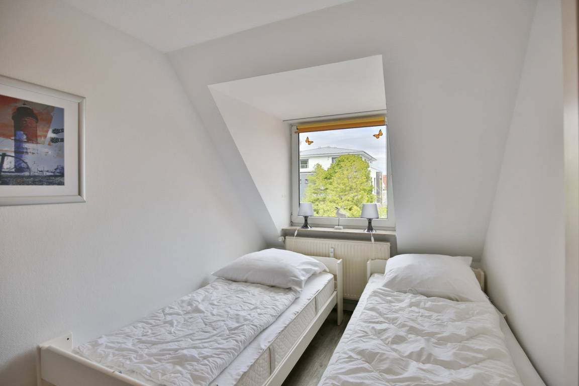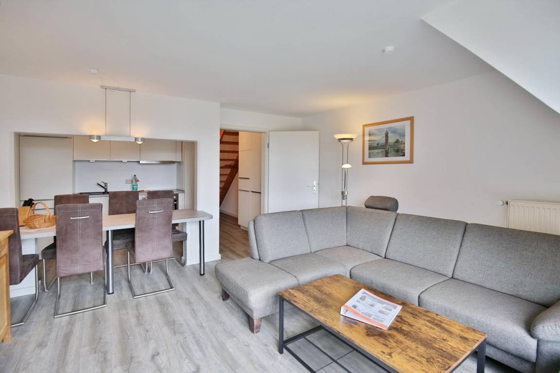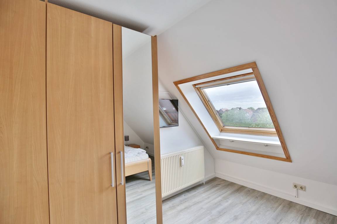 Sehr schöne renovierte 4-Raum-Maisonette-Wohnung über 2 Etagen mit ca. 70m², komplett ausgestattet bis 6 Pers., 1 Schlafzimmer mit 2 Einzelbetten, 1 Schlafzimmer mit Doppelbett und TV (DVBT), 1 kl. Schlafzimmer mit ausziehbarem Doppelbett, Treppe mit Kindersicherung, 1 Wohnzimmer, Balkon (west), teilweise Insektenschutz an den Fenstern, 3 x TV, Radio, W-Lan kostenfrei, Küchenzeile mit 4 Pl., Backofen, Mikrowelle, 2xDu/WC mit Föhn, Nichtraucher, keine Haustiere, 1 Pkw-Stellplatz #20 hinter dem Haus
