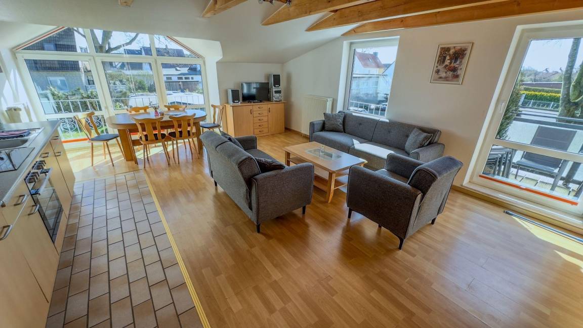 Die Ferienwohnung bietet eine attraktive und ruhige Lage, ideal für Erholungssuchende. Sie beeindruckt mit modernem Design und komfortabler Ausstattung. Zahlreiche Freizeitmöglichkeiten sind in unmittelbarer Nähe. Die großzügigen Fenster sorgen für viel Tageslicht und eine einladende Atmosphäre. Gäste können die idyllische Umgebung erkunden und entspannte Stunden genießen. Ein perfekter Ort für unvergessliche Urlaubsmomente.