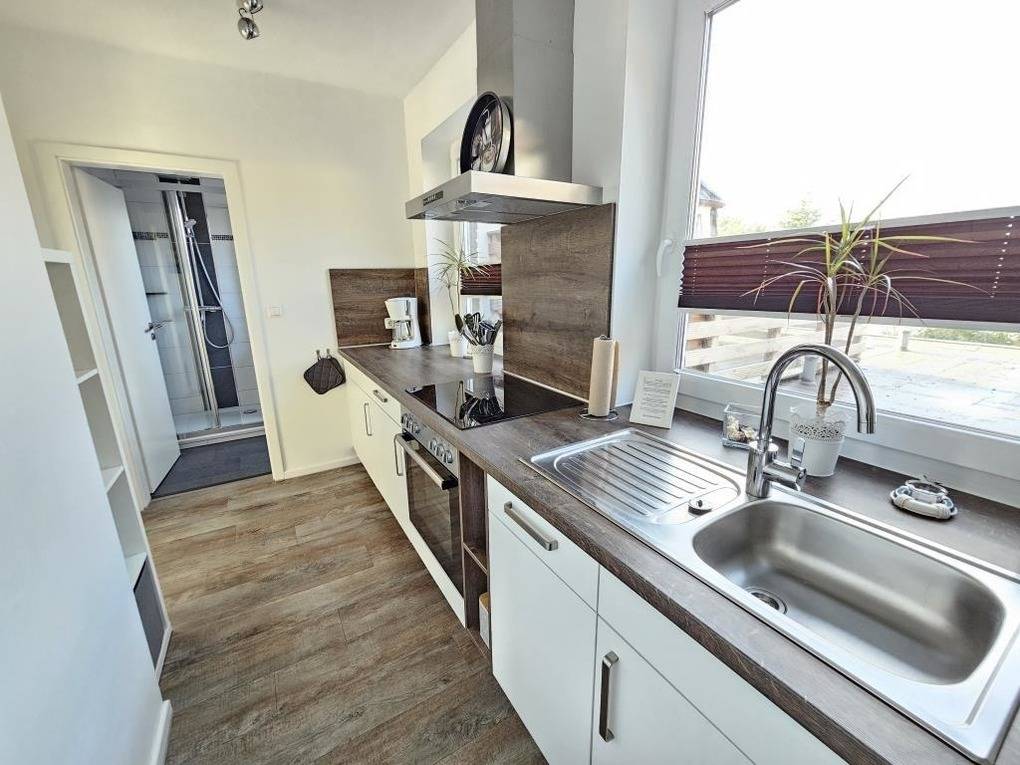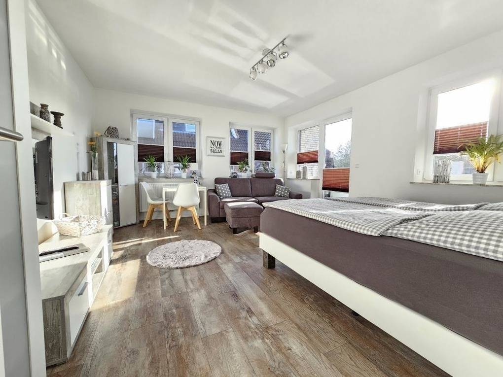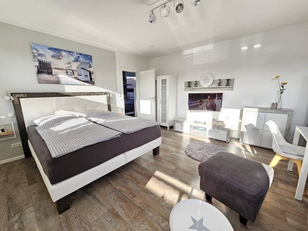 Im Appartementhaus Kogge in Cuxhaven - Sahlenburg befindet sich das gemütliche Einraum-Appartement Kogge 4, das liebevoll renoviert wurde. Die Ferienwohnung bietet ein Boxspringbett (1,80m x 2m) und ein Sofa zum Entspannen. Zur Ausstattung gehören ein TV, CD-Radio und ein kostenloser WLAN-Hotspot. Die kleine Küchenzeile ist mit einem Backofen, Kühlschrank mit Gefrierfach und Geschirrspüler ausgestattet, um die Selbstverpflegung zu erleichtern. Das renovierte Badezimmer verfügt über eine Dusche/WC und einen Föhn. Zudem handelt es sich um eine Nichtraucherwohnung. Gemeinschaftliche Waschgelegenheiten sind im Keller vorhanden, wo Waschmaschine und Trockner gegen Gebühr genutzt werden können. Eine kleine Erstausstattung für den ersten Tag steht ebenfalls bereit. Die Wohnung ist ideal gelegen, nur etwa 800 Meter vom Sahlenburger Strand entfernt.
