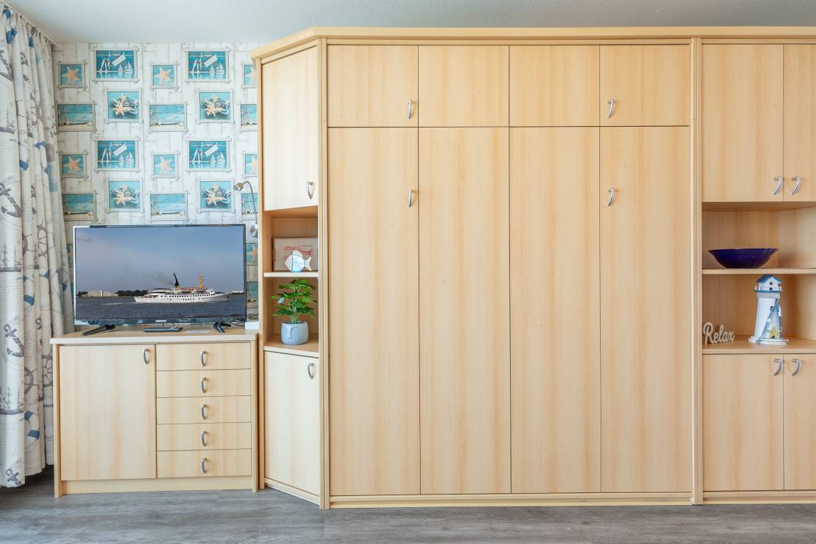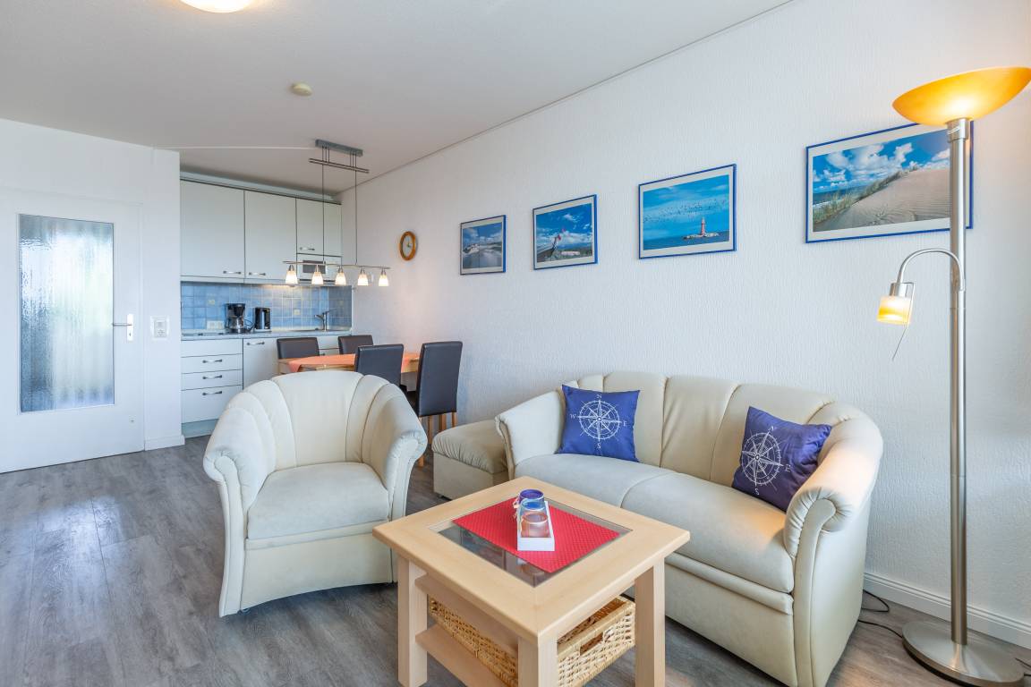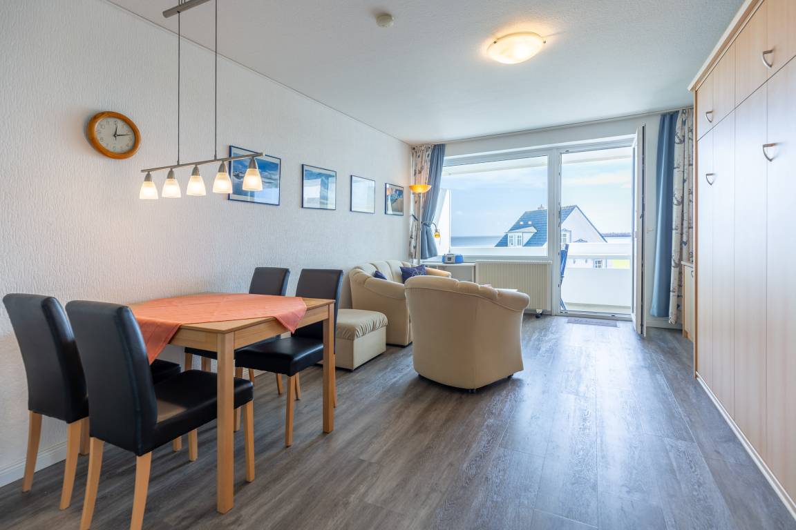Morgens aufwachen, das Meeresrauschen hören und den Blick über die Grimmershörner Badebucht schweifen lassen. Schöner kann ein Urlaubstag kaum beginnen. Die gemütliche Ferienwohnung Nautic 305 liegt im 3. Obergeschoss und bietet Ihnen sowohl vom kombinierten Wohn- und Schlafbereich als auch vom möblierten Balkon einen schönen Ausblick auf den Schifffahrtsweg.