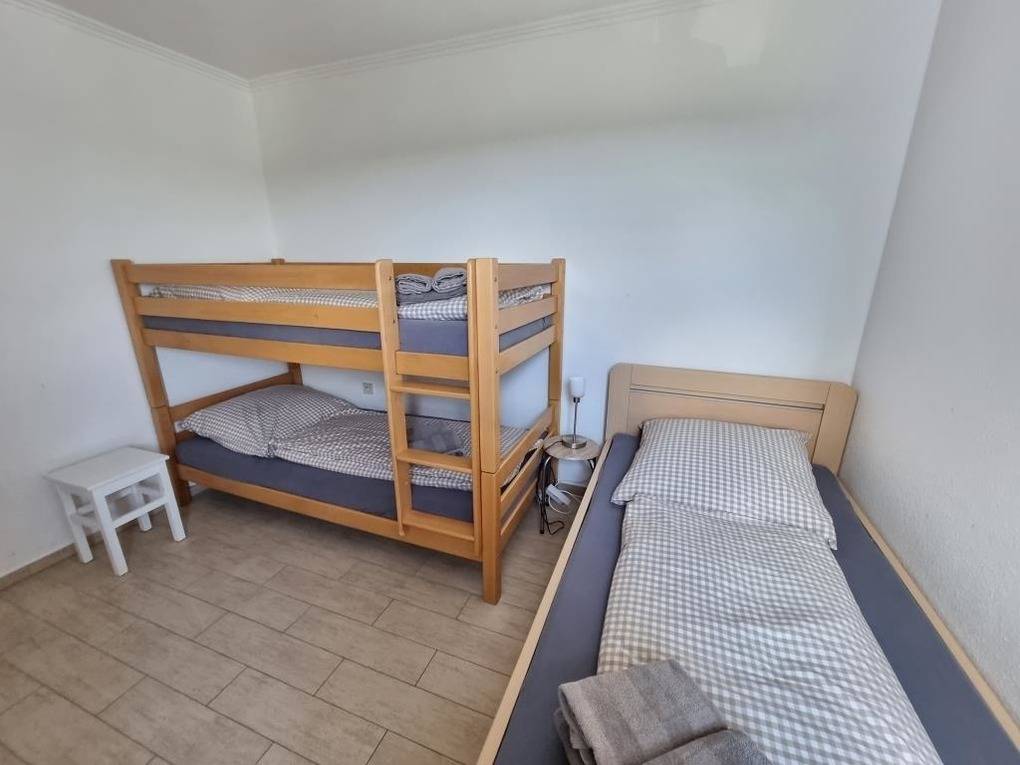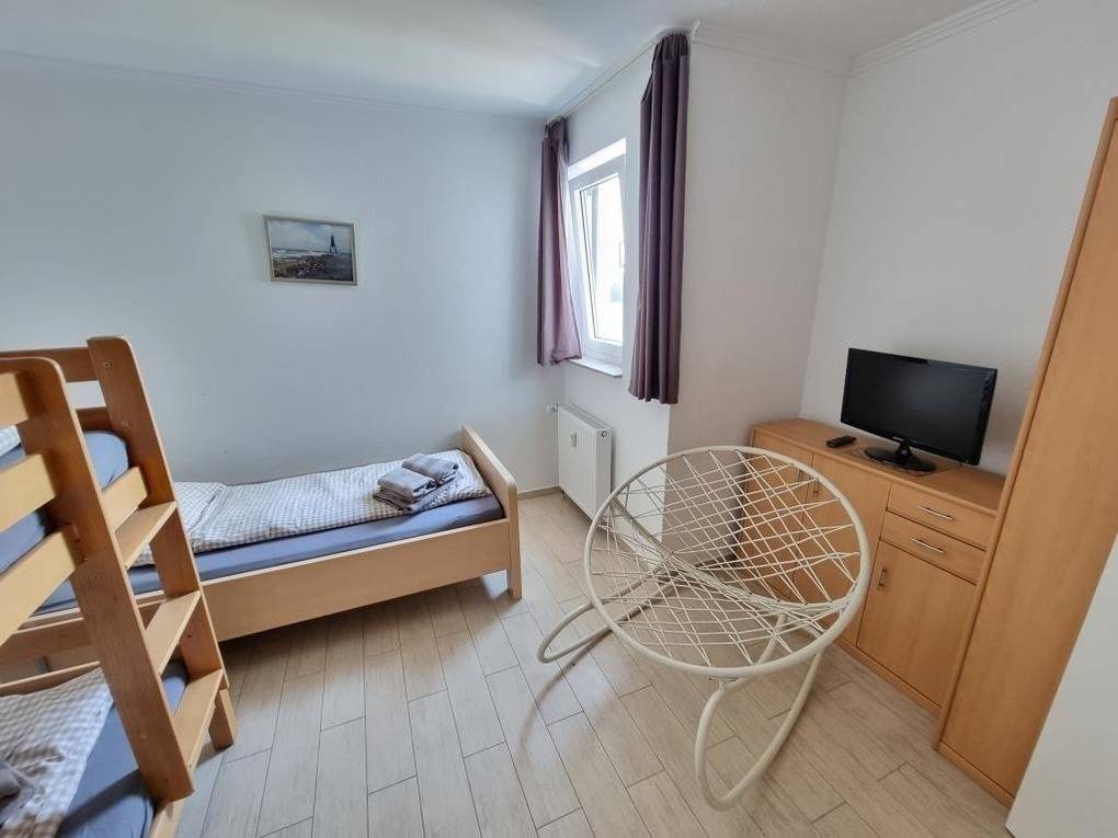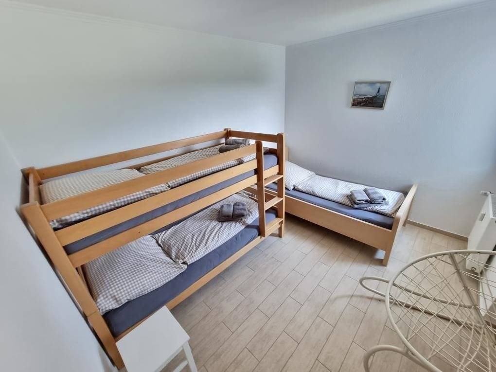 Die gemütliche Ferienwohnung im Haus Frische Brise bietet einen Schlafraum mit einem Doppelbett (1,80 m x 2 m) sowie einen weiteren Schlafraum mit einem Etagenbett und einem Einzelbett. Der Wohnraum ist mit einem Balkon ausgestattet und lädt zum Entspannen ein. Die separate Küche verfügt über eine Küchenzeile mit Backofen, Geschirrspüler, Mikrowelle und Gefrierfach, sodass ein problemloses Kochen möglich ist. Das Badezimmer ist mit einer Dusche und WC ausgestattet. Kostenloses WLAN steht zur Verfügung. Eine kleine Erstausstattung für den ersten Tag, einschließlich Spülmittel und Toilettenpapier, ist vorhanden. Gästen steht das Schwimmbad (17 m x 8 m) kostenlos zur Verfügung, während die Sauna und der Tennisplatz gegen Gebühr genutzt werden können. Im Freizeitbereich befindet sich eine Tischtennisplatte, die ebenfalls kostenlos genutzt werden kann. Parkplätze am Haus sind vorhanden.