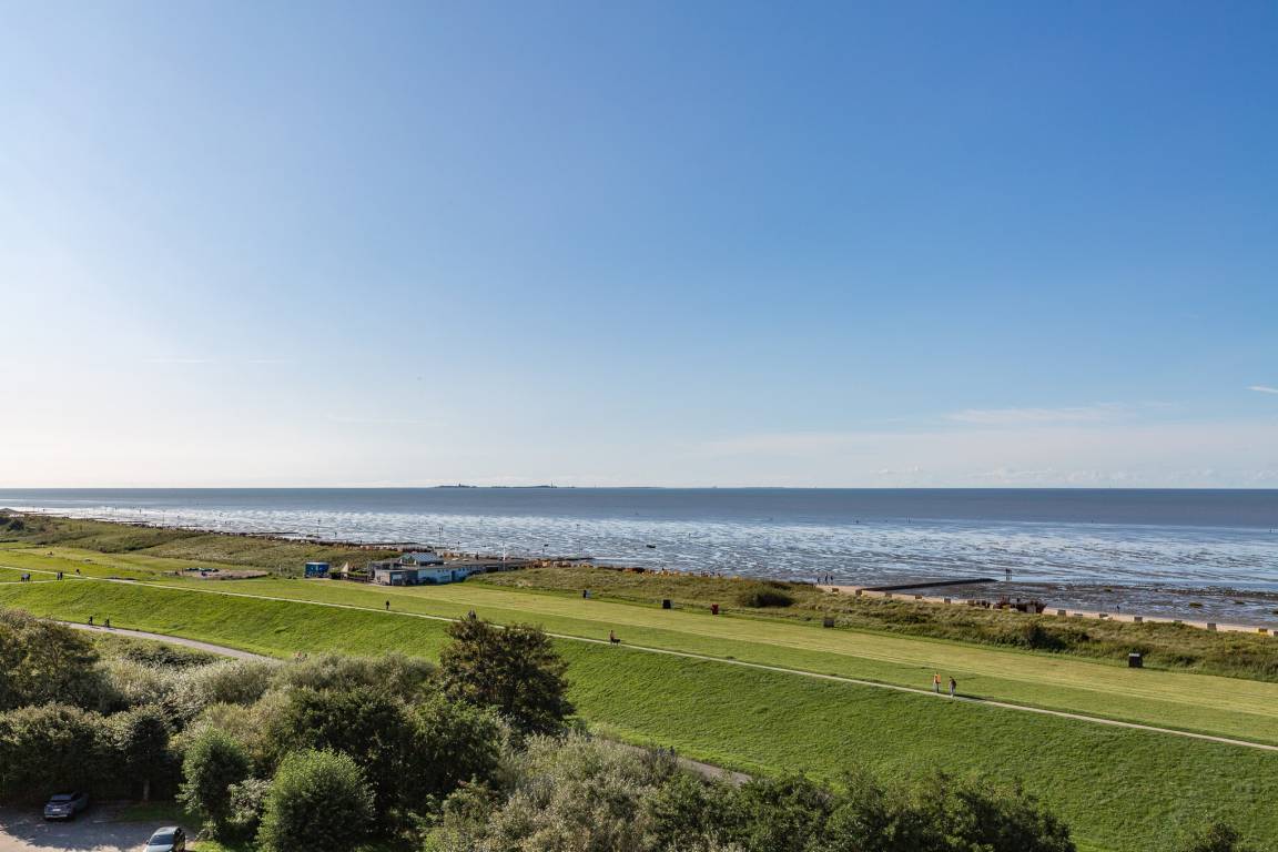 Die 55 m² Ferienwohnung ist eine echte Rarität. Die Eck-Ferienwohnung bietet einen außergewöhnlichen Rundumblick aus der 6. Etage. Lehnen Sie sich entspannt zurück und genießen Sie den Blick auf die Nordsee, Sonnenuntergänge und den Weltschifffahrtsweg. Ankommen, Wohlfühlen und Entspannen – so geht der perfekte Urlaub.
