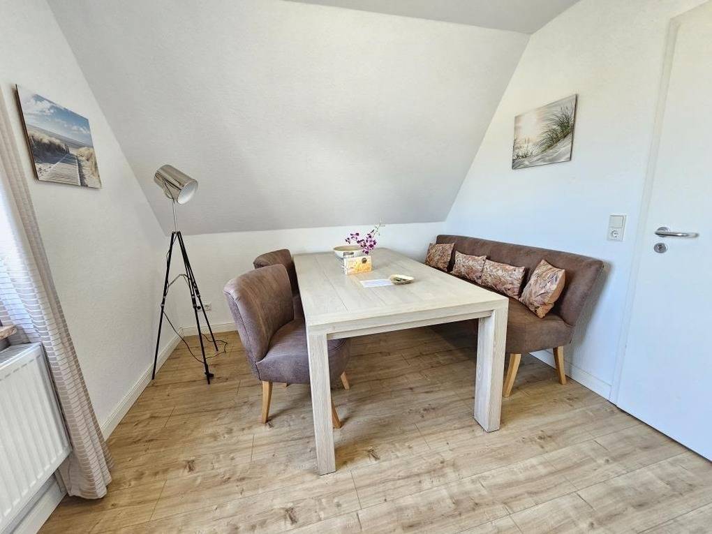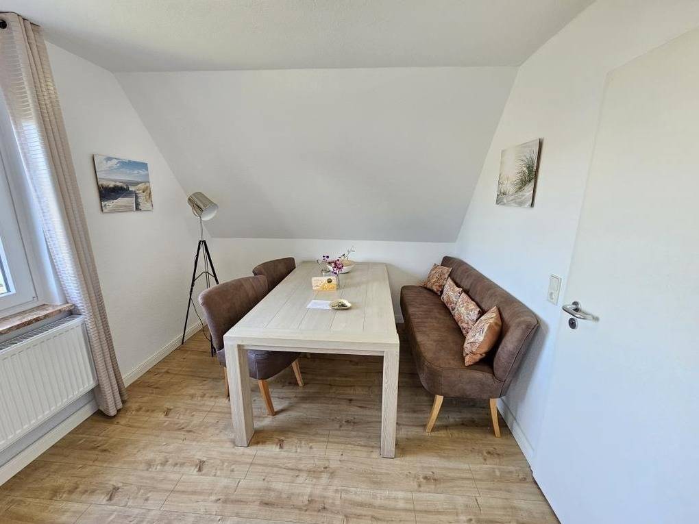 Die Wohnung "Nordsand" in Sahlenburg bietet eine gemütliche und renovierte Unterkunft im 1. Obergeschoss eines freistehenden Hauses. Der Schlafraum ist mit einem komfortablen Doppelbett (1,80 m x 2 m) ausgestattet. Im wohnlichen Bereich kann man entspannte Stunden mit einem Buch oder TV-Abenden verbringen. Die Wohnküche verfügt über einen großen Essplatz sowie eine Küchenzeile mit einem 2-Platten-Ceranfeld, einer Mikrowelle mit Ofenfunktion und einem Kühlschrank mit Gefrierfach. Das Badezimmer bietet sowohl eine Dusche als auch eine Badewanne. WLAN steht kostenfrei zur Verfügung, und ein Parkplatz am Haus sowie eine Fahrradabstellmöglichkeit sind ebenfalls gegeben. Eine kleine Erstausstattung für den ersten Tag ist vorhanden. Haustiere sind in der Wohnung herzlich willkommen.