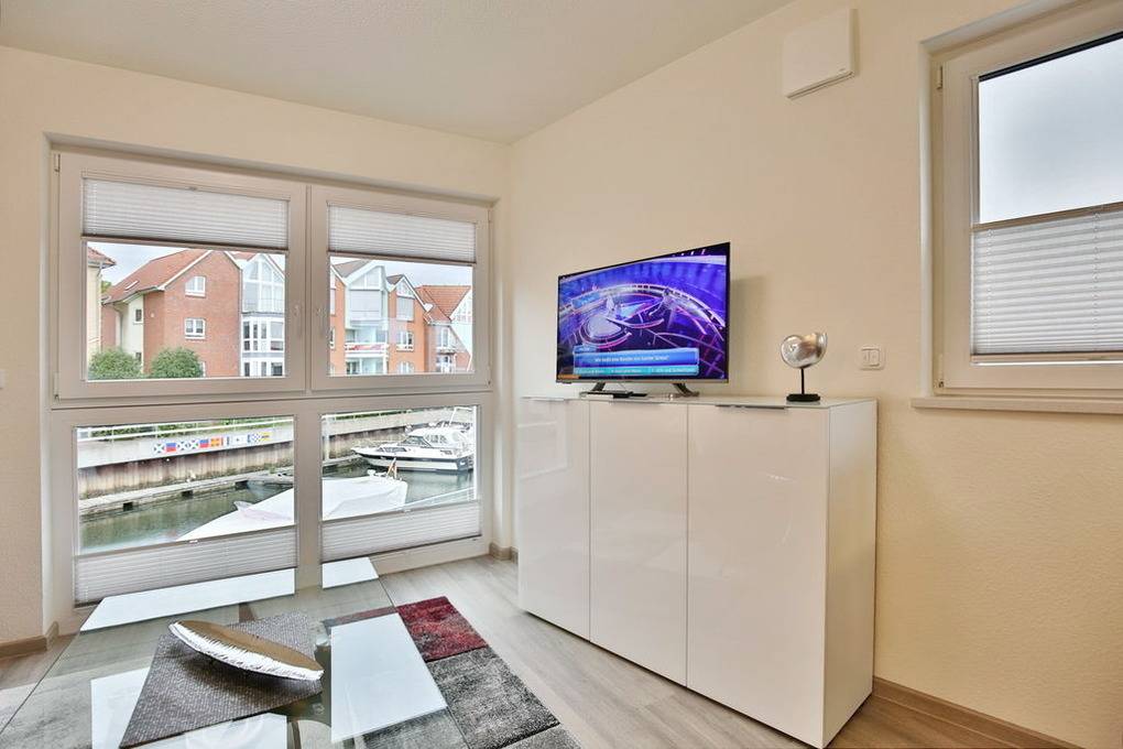 Schöner Blick in die City Marina! 2-Raum-Wohnung für 2 Pers. in der 1.Etage mit überdachtem Balkon (nord-ost). Voll ausgestattete Küchenzeile mit Backofen, Geschirrspüler etc.. Wohn- Esszimmer mit TV, Radio, Schlafzimmer mit Doppelbett, Badezimmer mit ebenerdige Dusche/WC, kostenloses Wlan, alle Fenster mit elktr. Rollläden [&] teilweise Insektenschutz an den Fenstern,[nbsp] Aufzug, Waschmaschine/Trockner i.d. Wohnung, Stellplatz #4 und großer separater Abstellraum mit E-Bike Lademöglichkeit, Waschmaschine/Trockner i.d. Wohnung, keine Haustiere und natürlich Nichtraucher.