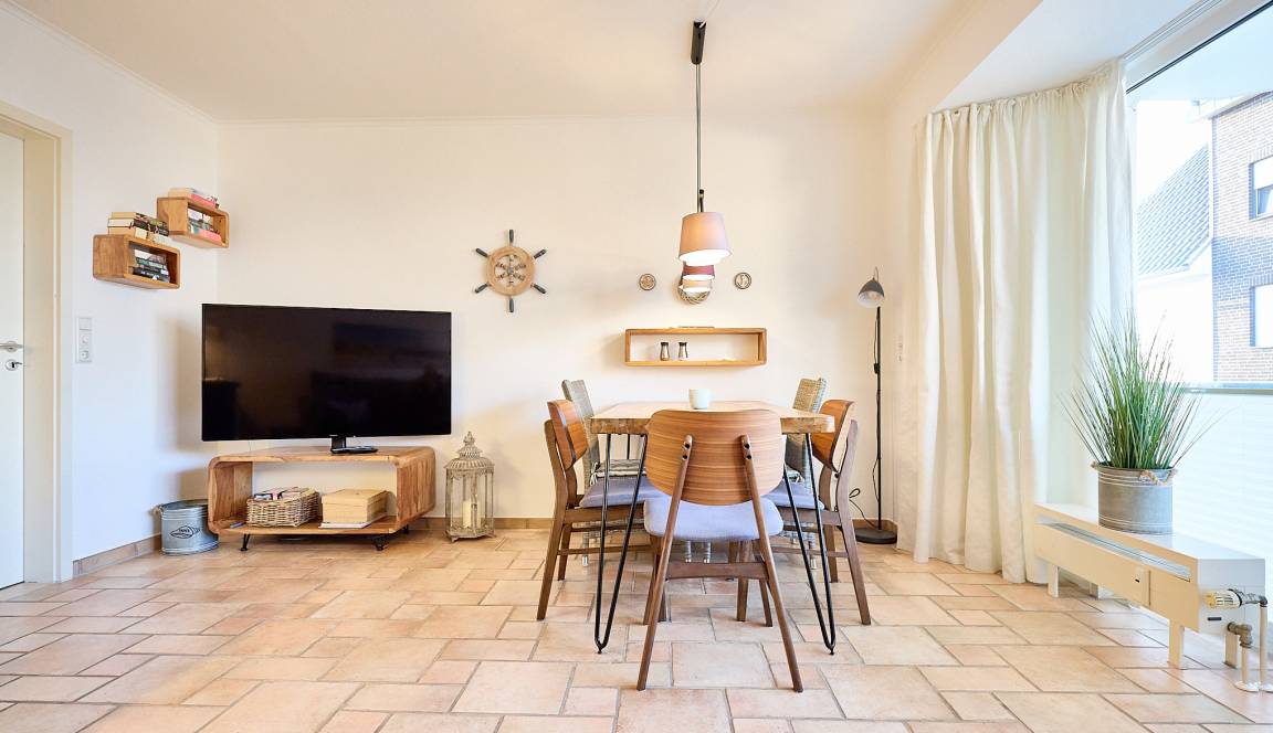 Der feinsandige Strand, die Promenade, Restaurants und Einkaufsmöglichkeiten liegen nur wenige Schritte entfernt. Die Wohnung bietet eine wohnliche Atmosphäre, kurze Wege und zwei schöne Balkone – ideal für Paare und Familien, die Duhnen entspannt erleben möchten.
