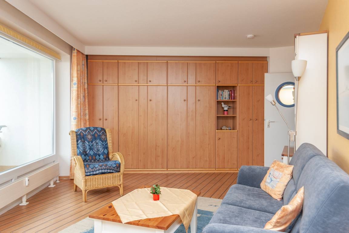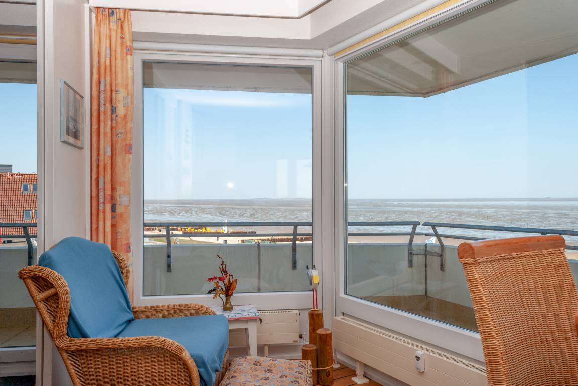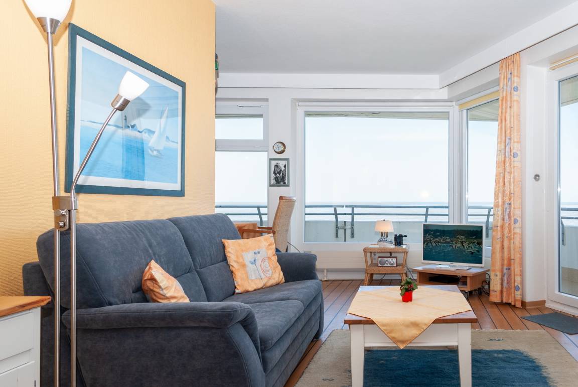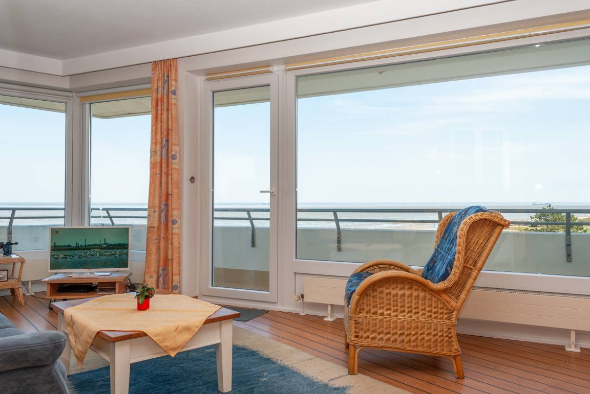 Das Apartment 506 ist ein 2-Raum-Apartment im 5. Obergeschoss für bis zu 4 Personen mit 67 qm. Der Balkon mit direktem Meerblick bietet Ihnen einmalige Sicht auf Duhner Strand und Promenade.