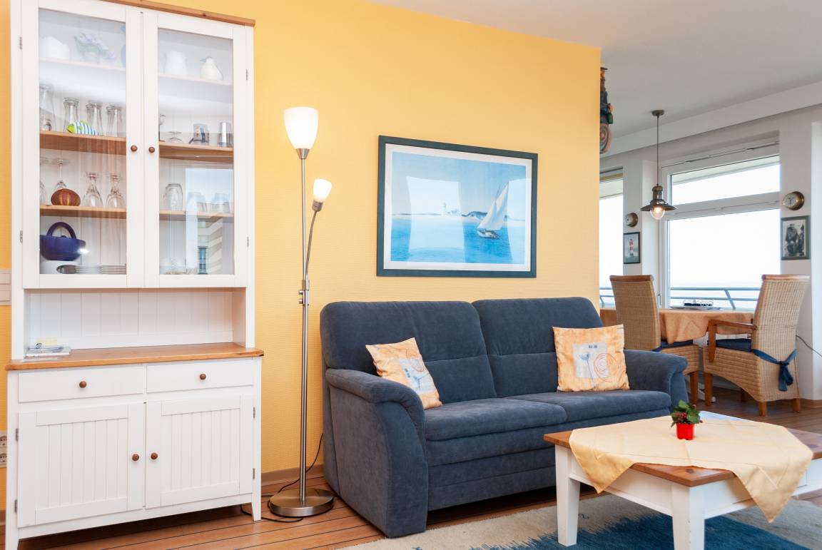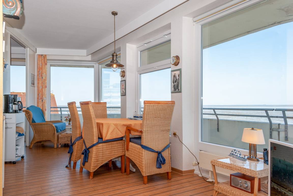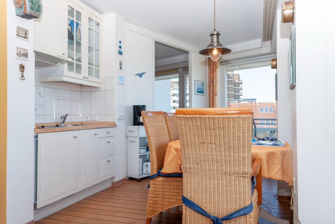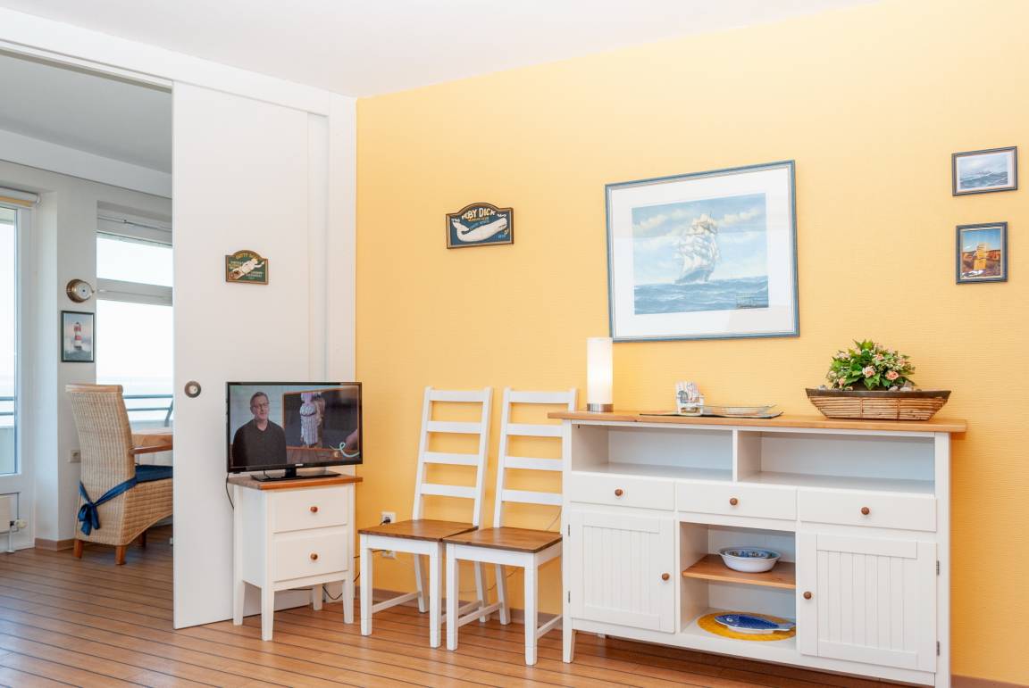 Das Apartment 506 ist ein 2-Raum-Apartment im 5. Obergeschoss für bis zu 4 Personen mit 67 qm. Der Balkon mit direktem Meerblick bietet Ihnen einmalige Sicht auf Duhner Strand und Promenade.