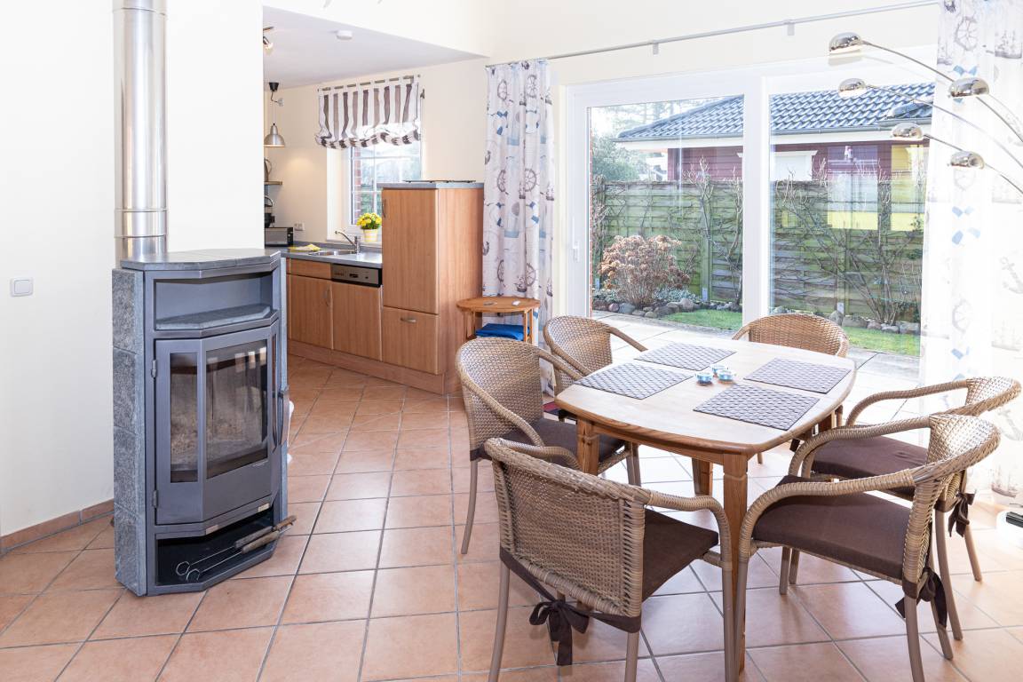 Die großzügige Wohnfläche beträgt ca. 68 qm und vom lichtdurchfluteten Wohnbereich mit offener Küche gelangt man auf die sonnige Westterrasse, die mit bequemen Möbeln und einem schicken Sonnenschirm ausgestattet ist. Das Haus bietet ein Duschbad mit WC und ein zusätzliches Gäste-WC. Die beiden Schlafzimmer sind durch das geräumige Wohnzimmer getrennt. Die Lattenroste sind beidseitig verstellbar. Die wohlige Wärme im Haus wird durch Elektroheizkörper erzeugt, die Energie dafür stammt aus der eigenen PV-Anlage des Hauses. Außenjalousien sorgen für zusätzlichen Komfort.
