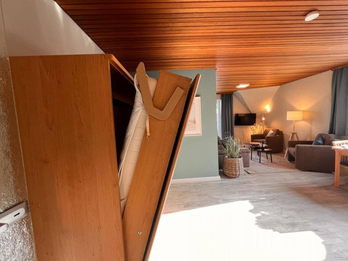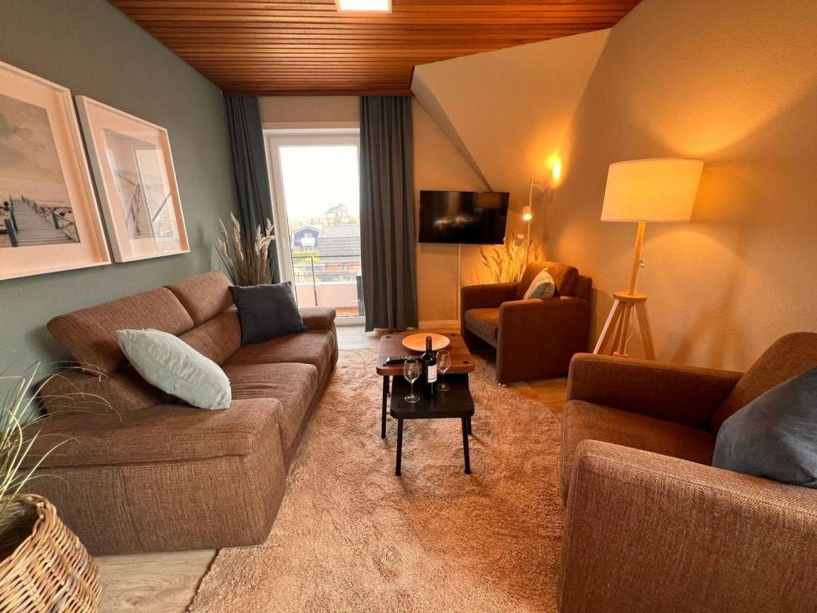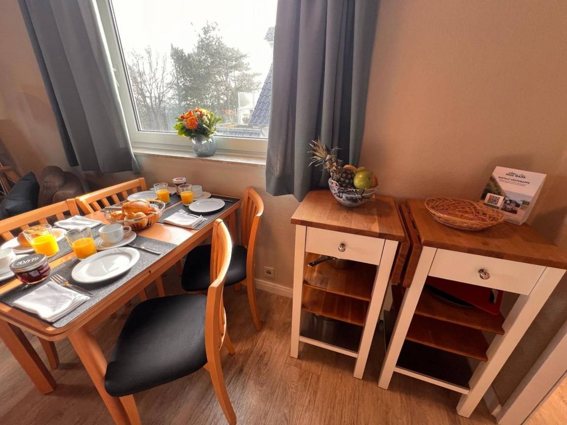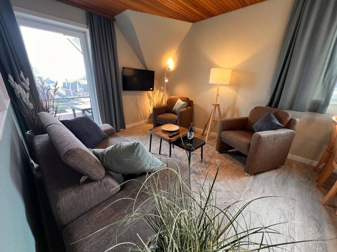 2-Zimmer Appartement im Haus "Nige Wark". In der TV-/Leseecke im Wohnzimmer befindet sich ein gemütliches Zweisitzer-Sofa, zwei Sessel und ein Flat- TV. Die integrierte Küchenzeile mit Spülmaschine, Mikrowelle und Kühlschrank mit Gefrierfach ist komplett ausgestattet und der ausziehbare Esstisch bietet genügend Platz für alle. Im Wohn-/Schlafraum befindet sich zusätzlich noch ein ein Schrankbett (2x90x200). Im Schlaf-/Kinderzimmer steht ein Etagenbett. Das Badezimmer ist mit einer Dusche und WC ausgestattet. Die ca. 38 qm große Wohnung liegt im 1. OG und verfügt zudem auch über einen Balkon zum Garten