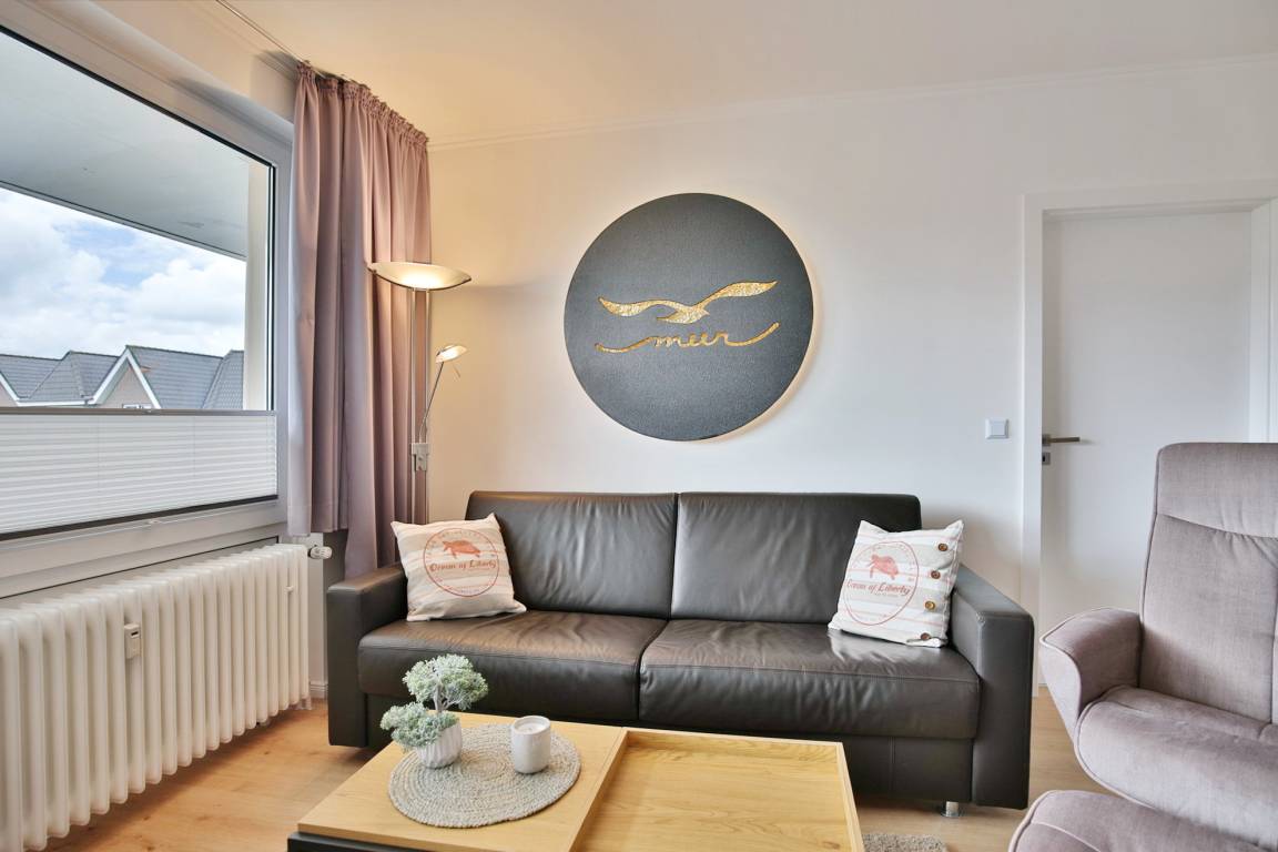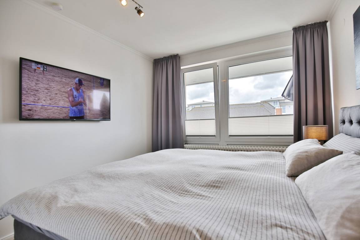 Tolle, moderne 3-Raum-Wohnung für 2 Pers mit Teilseesicht in bester Lage. (60m²), 2.Etage, 1 Schlafzimmer mit Doppelboxspringbett [&] TV, 1 Schlafzimmer mit Futon-Klappsofa [&] TV, Dusche/WC, Wohnzimmer mit schöner offener Küchenzeile (Back., Mikrow., Geschirrspüler) 3xSAT-TV, HiFi-Anlage, W-LAN kostenlos, 1 großer Balkon (west mit Teilseesicht), Balkontür und Fenster mit hochwertigem Mückenschutzsystem versehen, Pkw-Stellplatz #23 vor dem Haus, Nichtraucher.