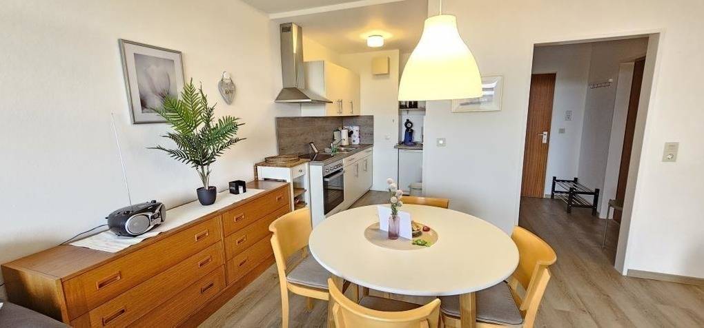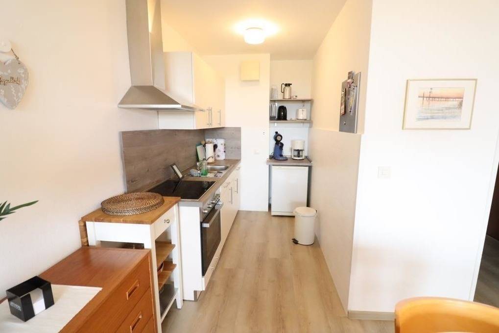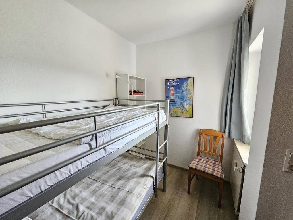 In der Ferienwohnung im Haus Frauenpreiss in Cuxhaven - Sahlenburg erwartet die Gäste ein gemütlicher Wohnraum mit einem Doppelbett (1,60 m x 2 m) sowie ein Schlafraum mit einem Etagenbett. Der Wohnraum bietet Zugang zu einem Balkon mit Sitzgelegenheit und Blick auf die Pferdewiese. Zur Unterhaltung stehen ein TV und ein kostenloser WLAN-Hotspot bereit. Die moderne Küchenzeile ist mit einem Backofen, Kühlschrank mit Gefrierfach und Geschirrspüler ausgestattet. Das Badezimmer verfügt über eine Badewanne und ein WC. Die Wohnung ist eine Nichtraucherwohnung. Parkmöglichkeiten sind kostenfrei am Haus verfügbar. Das große Schwimmbad im Haus kann kostenfrei genutzt werden, während Sauna und Dampfbad gegen Gebühr zur Verfügung stehen. Waschmaschine und Trockner befinden sich im Waschraum und sind ebenfalls gebührenpflichtig nutzbar. Eine kleine Erstausstattung steht für den ersten Tag bereit.