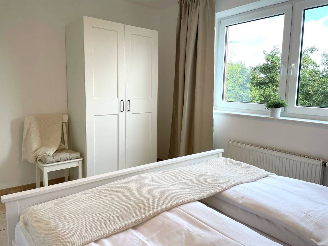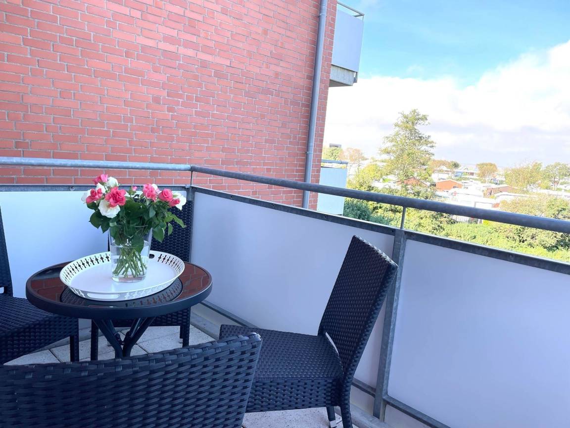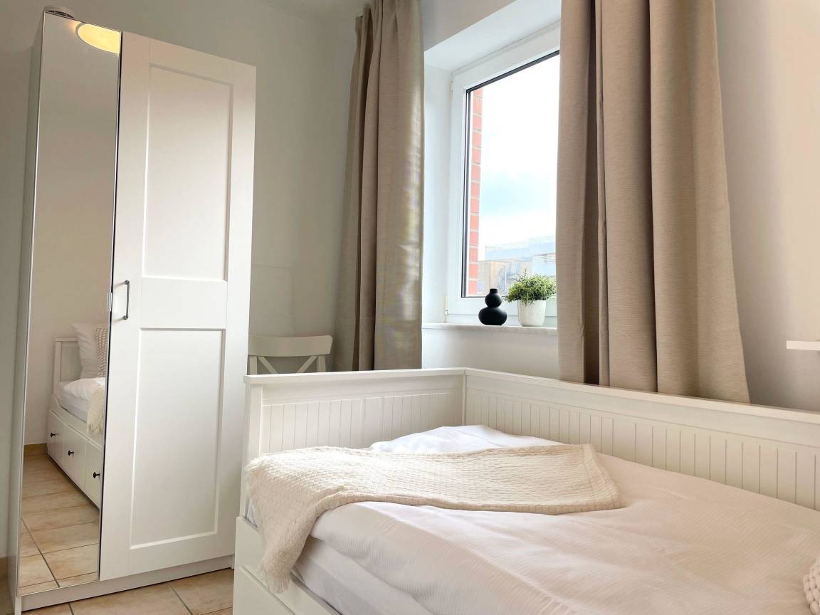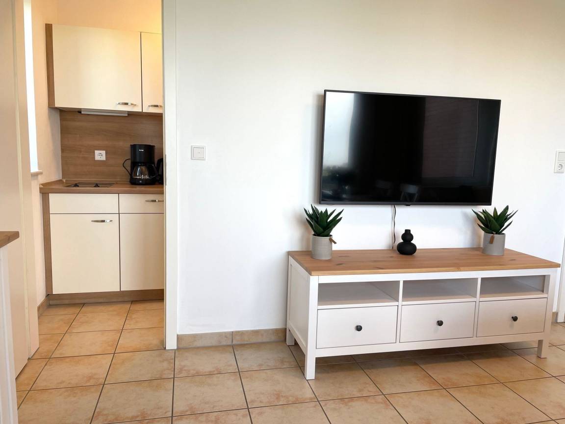 Die Ferienwohnung im 2. Obergeschoss bietet auf 51 qm Platz für bis zu 6 Personen und zeichnet sich durch eine durchdachte Raumaufteilung aus. Sie verfügt über ein Schlafzimmer mit Doppelbett, ein kleineres Schlafzimmer mit ausziehbarem Tagesbett sowie ein Schlafsofa im Wohnzimmer. Der geschmackvoll eingerichtete Wohnbereich ist mit einem Flatscreen-TV ausgestattet. Die Küchenzeile bietet essentielle Geräte wie Herd, Mikrowelle, Toaster, Wasserkocher und Kaffeemaschine. Ein Balkon mit Teil-Meerblick lädt zum Entspannen ein. Die Wohnung ist bequem über einen Aufzug erreichbar. Gemeinschaftliche Einrichtungen, wie der Fahrradkeller, befinden sich im Erdgeschoss und bieten praktischen Stauraum für Fahrräder.