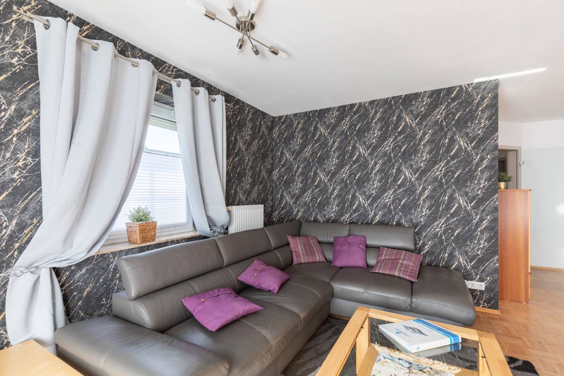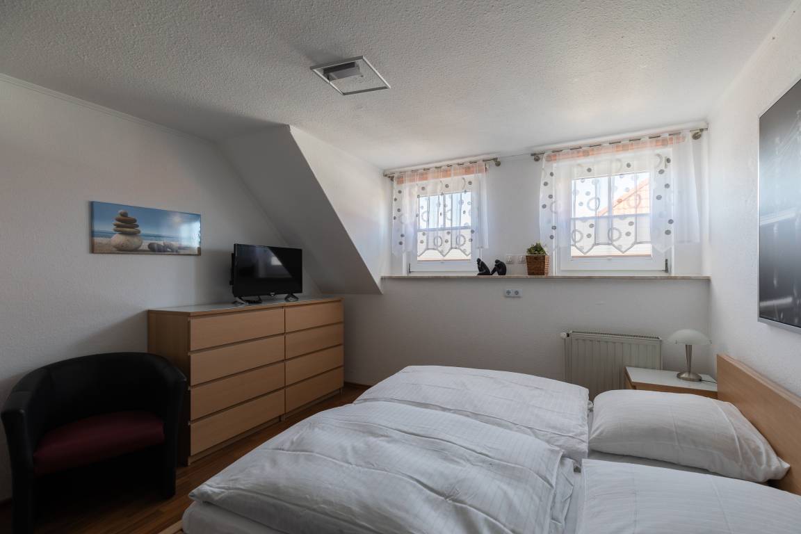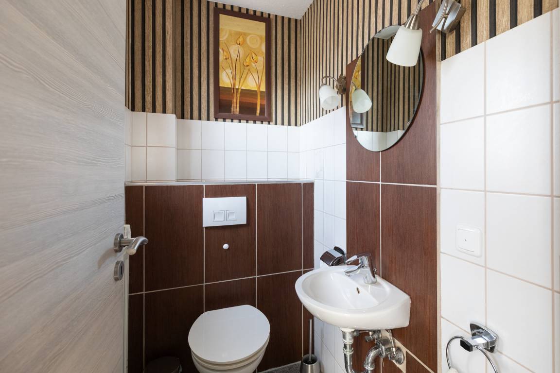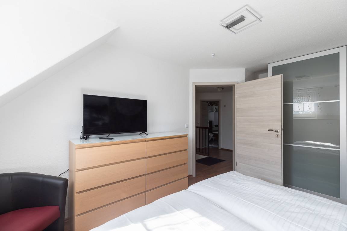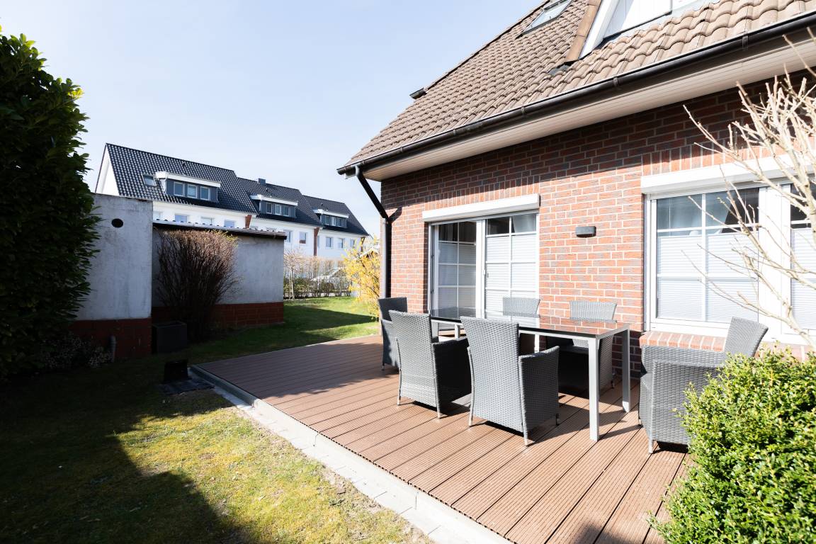 Das modern eingerichtete Ferienhaus mit einer Größe von ca. 140 m² Wohnfläche (300 m² Grundstück) ist komplett bis zu 6 Personen ausgestattet. 2 Schlafzimmer mit jeweils einem Doppelbett, TV und Kleiderschrank, 1 Schlafzimmer mit 2 Einzelbetten und Kleiderschrank, großes Wohnzimmer mit Sofaecke, direktem Zugang in den Garten/Terrasse, Esstisch, TV und elektrischen Aussenrollläden, komplett eingerichtete Einbauküche (Backofen, Cerankochfeld, Geschirrspüler, Toaster, Kaffeemaschine, Wasserkocher, Massimo Kaffeemaschine), Dusche mit WC und Eckbadewanne im Obergeschoss, Gäste WC im Erdgeschoss, Waschmaschine, Bügeleisen und Bügelbrett im Abstellraum,[nbsp][nbsp]Nichtraucherhaus, keine Haustiere, Garage direkt am Haus.