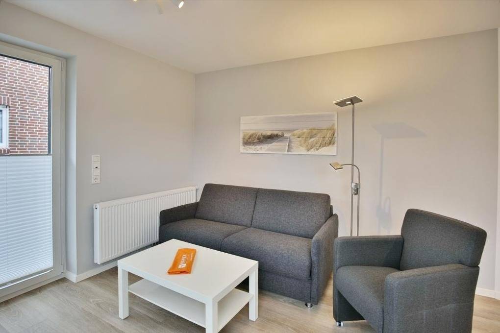 Sehr geschmackvoll und vollständig ausgestattete Ferienwohnung auf ca. 47m² bis 3 Pers., EG mit großer Terrasse (süd), 1 Schlafzimmer mit Doppelbett u. TV, Wohn-/Schlafzimmer mit hochwertiger Schlafcouch, TV, Blue-Ray-DVD, kostenfreies W-LAN, vollständige Küchenzeile mit Geschirrspüler, Mikrowelle, Backofen, Gefrierfach, ebenerdige Dusche/WC mit Föhn, alle Räume sind mit Rollladen zu verdunkeln, Nichtraucherwohnung, reservierter Pkw-Stellplatz #4, keine Haustiere gestattet. Hinweis der Eigentümer: Elektrofahrzeuge dürfen nicht am Ferienobjekt geladen werden.
