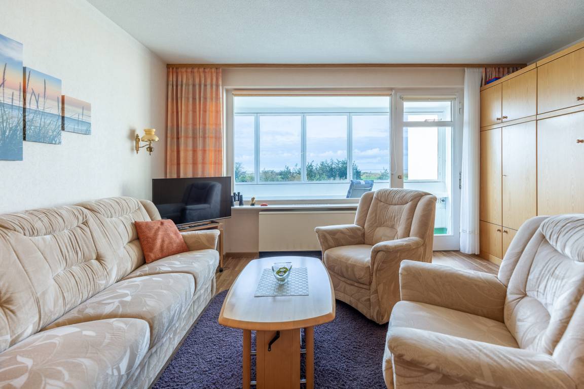 Lehnen Sie sich auf dem komfortablen Sofa oder dem Sessel zurück und genießen Sie den faszinierenden Ausblick auf die Nordsee, das Weltkulturerbe Wattenmeer und die Insel Neuwerk. Ein Flachbildfernseher und kostenloses W-LAN sorgen für beste Unterhaltung. Das Nehl-Schrankbett im kombinierten Wohn- und Schlafbereich sorgt für einen erholsamen Schlaf. Die integrierte Küche ist mit einem 2-Zonen Cerankochfeld, einer Mikrowelle, einem Geschirrspüler sowie einem Kühlschrank mit Gefrierfach ausgestattet.