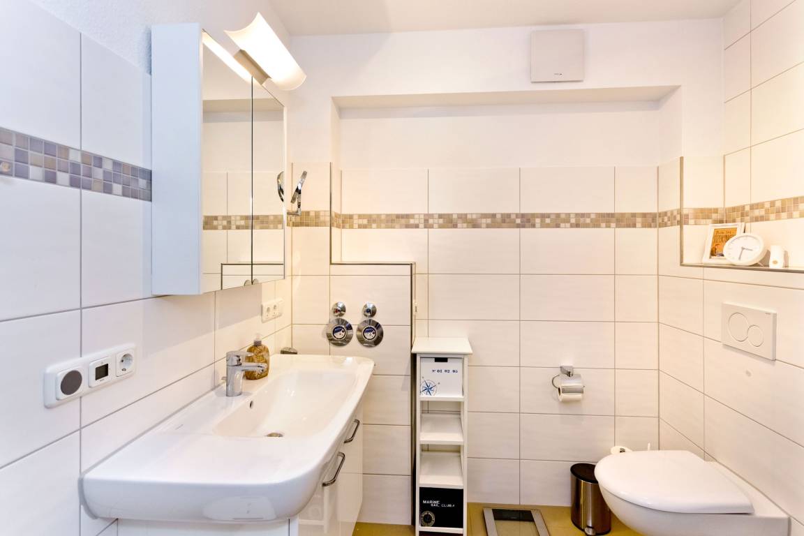 Sehr schöne 3-Zimmer-Wohnung auf ca. 62m², 1. Etage mit Aufzug erreichbar, Wohnzimmer mit vollausgestatteter Küchenzeile (Backofen, Mikrowelle, Geschirrspüler, Kühlschrank mit 3 Sterne Gefrierfach) Kabel-TV, kostenloses W-LAN-Internet, 1 Schlafzimmer mit Doppelbett, 1 Schlafzimmer mit Etagenbetten, alle Räume mit Insektenschutz an den Fenstern, ebenerdige Dusche u. WC, separates Gäste-WC, komfortables Wohnzimmer mit großem Balkon (süd-ost) inkl. Balkonmöbeln und Sonnenschirm, reservierter Pkw-Stellplatz #6 hinter dem Gebäude, keine Haustiere erlaubt, Nichtraucher.
