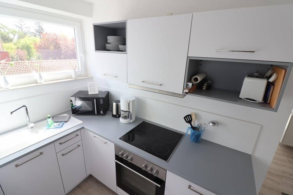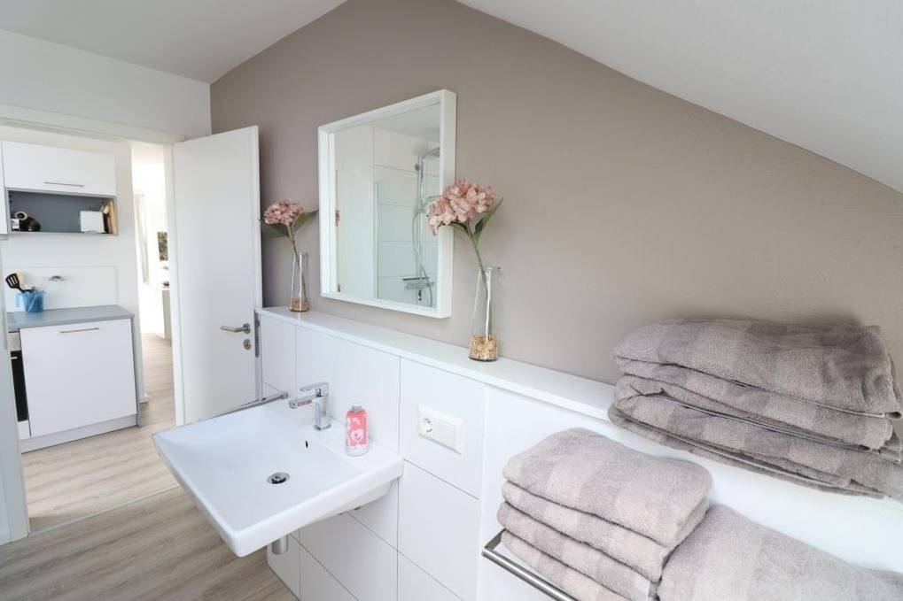 Die Ferienwohnung im freistehenden Meerhaus bietet einen gemütlichen Rückzugsort in ruhiger Lage, nur etwa 1.000 Meter vom Sahlenburger Strand entfernt. Mit drei separaten Schlafzimmern, darunter zwei mit Doppelbetten und eines mit einem Etagenbett, bietet sie Platz für bis zu sechs Personen. Der helle Wohnraum ist mit einem komfortablen Sofa, einem Essplatz und einem modernen Smart-TV ausgestattet. Die Küchenzeile umfasst einen Kühlschrank, Ceranfeld, Backofen und Geschirrspüler. Im Badezimmer stehen Dusche und WC zur Verfügung. Zwei Balkone laden zu entspannenden Stunden im Freien ein. Kostenloses WLAN und ein Parkplatz am Haus sind inklusive. Für Fahrräder gibt es eine Garage für die sichere Unterbringung. Eine kleine Erstausstattung für den ersten Tag ist ebenfalls vorhanden, um den Gästen den Aufenthalt zu erleichtern.
