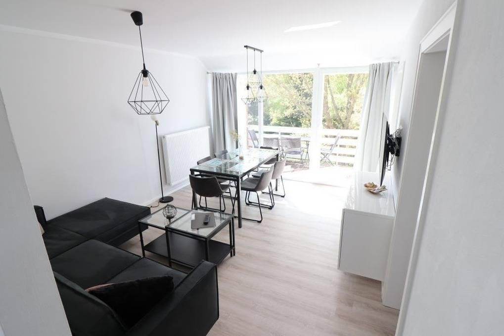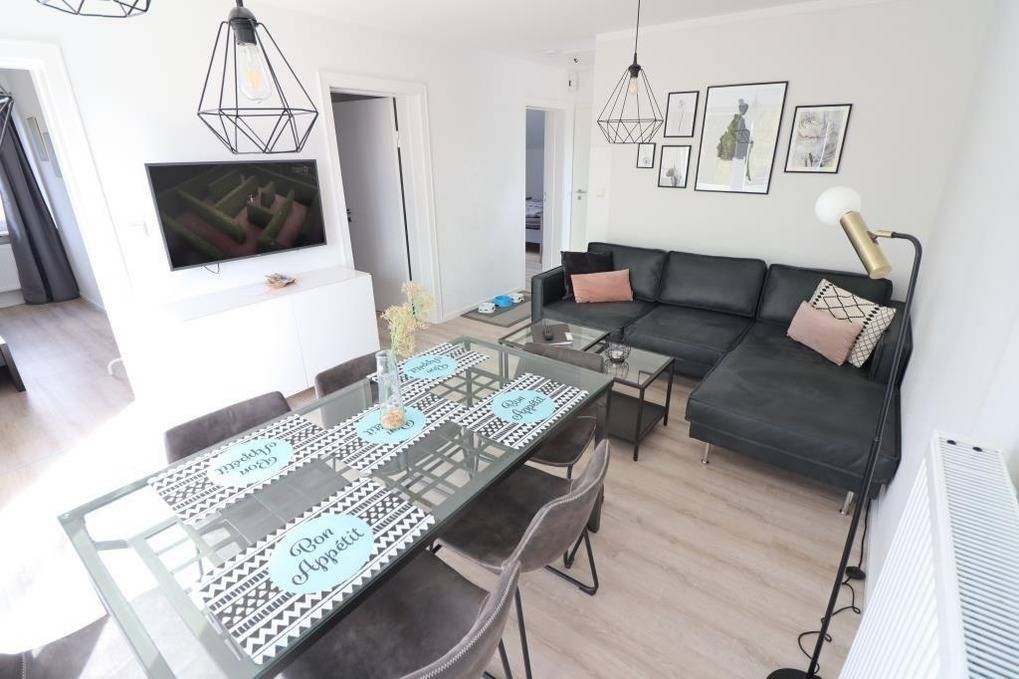 Die Ferienwohnung im Meerhaus bietet Platz für bis zu sechs Personen, liegt nur 1.000 Meter vom Strand entfernt und überzeugt mit zwei Balkonen, moderner Ausstattung und ruhiger Lage nahe der Natur.