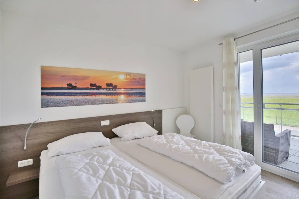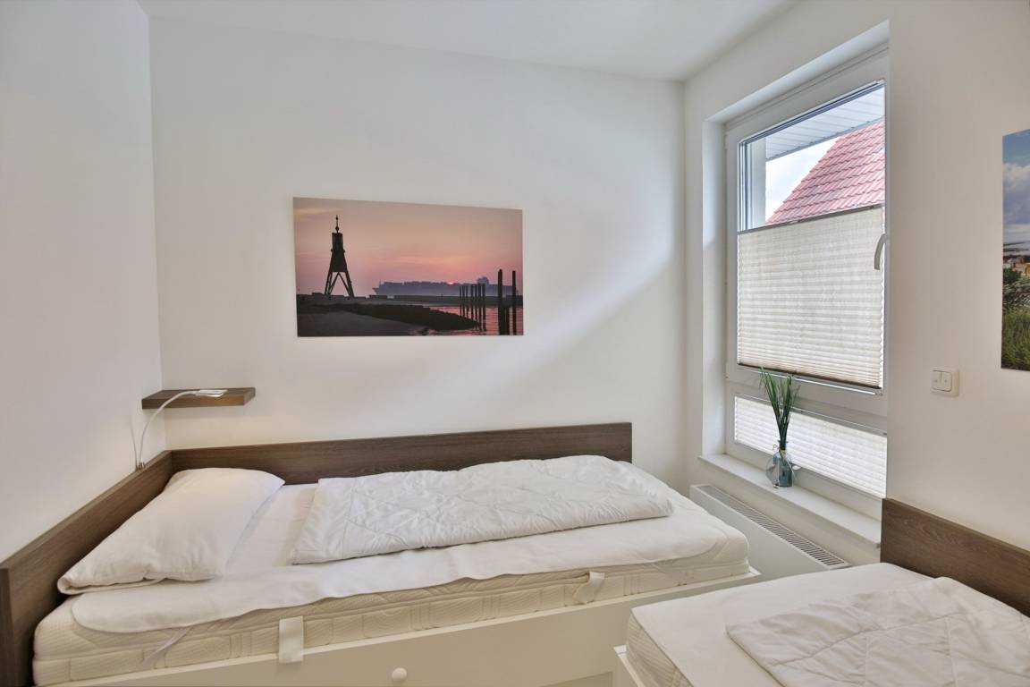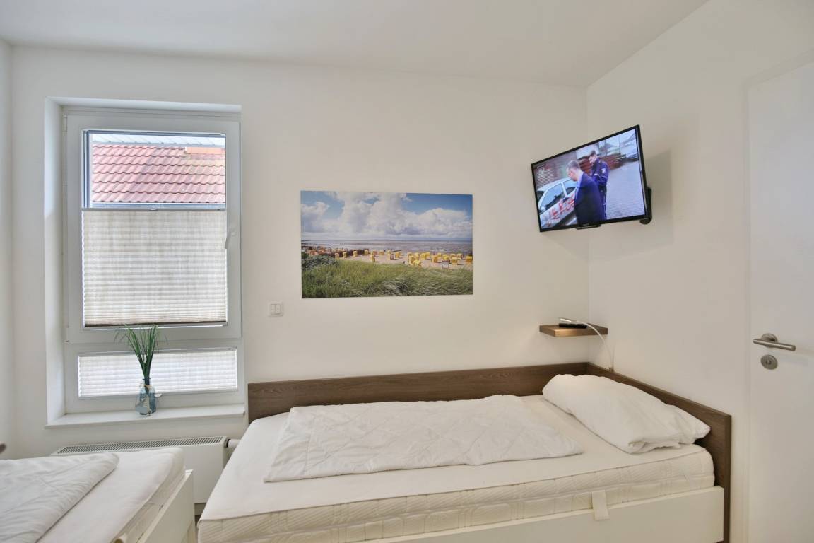 Neubau am Dünenweg. Schöne 3-Raum-Wohnung mit Blick auf Neuwerk im 1.OG mit Aufzug, Wohnzimmer mit Küchenzeile (Back, Mikrow., Geschirrsp.) 1 Schlafzimmer mit Doppelbetten und Rollläden, 1 Schlafzimmer mit 2 Einzelbetten und Rollläden, 1xBad/DU/WC mit Fußbodenheizung, 1xDu/Wc mit Fußbodenheizung, 3 x Kabel-TV, DVD-Player, CD-Radio, großer Balkon (west), kostenfreies W-Lan, keine Haustiere gestattet, Nichtraucher, reservierter Pkw-Stellplatz #2 hinter dem Haus.
